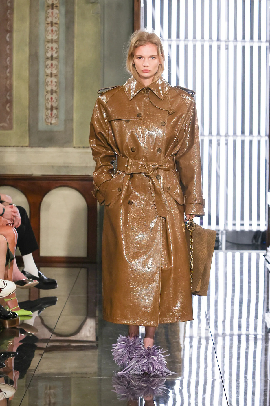 이번에도 일렉트릭 퍼플을 활용한 룩입니다. 구찌는 갈색 트렌치 코트와 보라색 구두를 매치했는데요. 일렉트릭 퍼플 특유의 화려함을 덜어내고, 기품을 더하기 위한 선택이었습니다. 앞서 살펴본 생 로랑의 사례와 마찬가지로, 우리는 구찌의 색 조합만 참고하면 됩니다. 갈색 수트 팬츠에 보라색 신발을 매치한다면, 과하지 않으면서도 참신한 가을 룩 완성입니다.