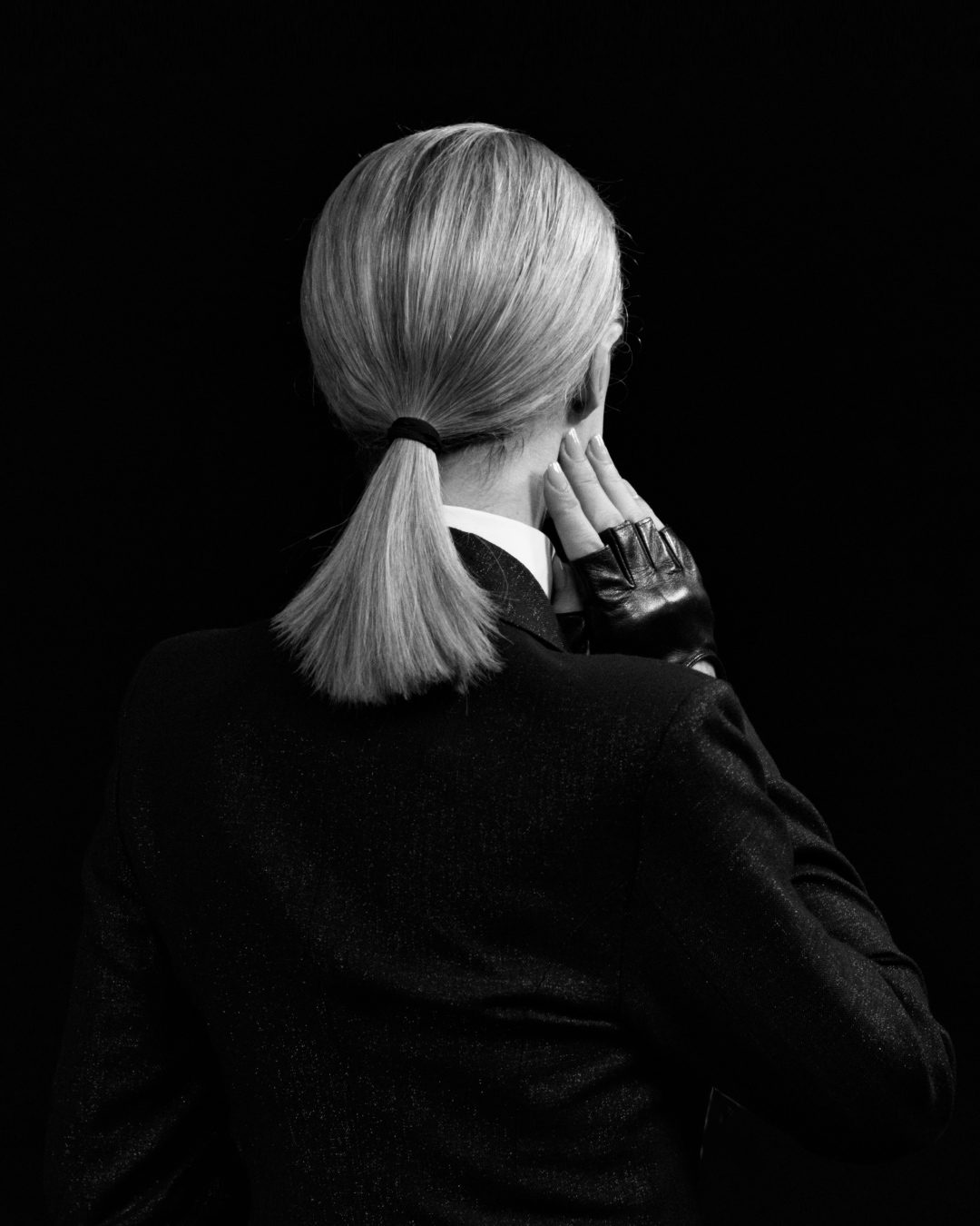 매끈하게 넘긴 슬릭백 헤어스타일, 커다란 블랙 선글라스, 시크한 블랙 수트, 단정한 로퍼까지, 그녀에게서 고인이 된 디자이너 칼 라거펠트의 모습이 겹쳐 보이죠. 패션 사진작가 크리스 콜스(Chris Colls)가 촬영한 캠페인 ‘From Paris with Love’는 라거펠트의 전설적인 시그니처 스타일에서 영감을 얻었습니다.
