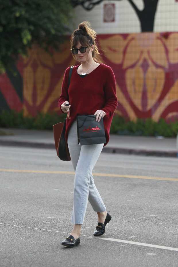 무려 10년째 같은 조합을 선보이는데도, 매번 다른 느낌을 연출한다는 점이 특히 인상적이더군요. 로퍼의 다재다능함을 다시 한번 절감하는 순간이었습니다. ‘본격적인 가을이 시작되기 전 번듯한 모양의 로퍼를 사야 하나’ 고민하며 관련 이미지를 찾아보기 시작했죠. 이번에도 다코타 존슨의 스타일링이 눈에 들어왔습니다. 알고 보니 그녀는 청바지뿐 아니라 각종 드레스와 수트 팬츠에도 로퍼를 매치했더군요. 구찌의 홀스빗 로퍼만 고집하는 것도 아니었고요. 다코타 존슨이 로퍼를 신는 네 가지 방법을 소개합니다.