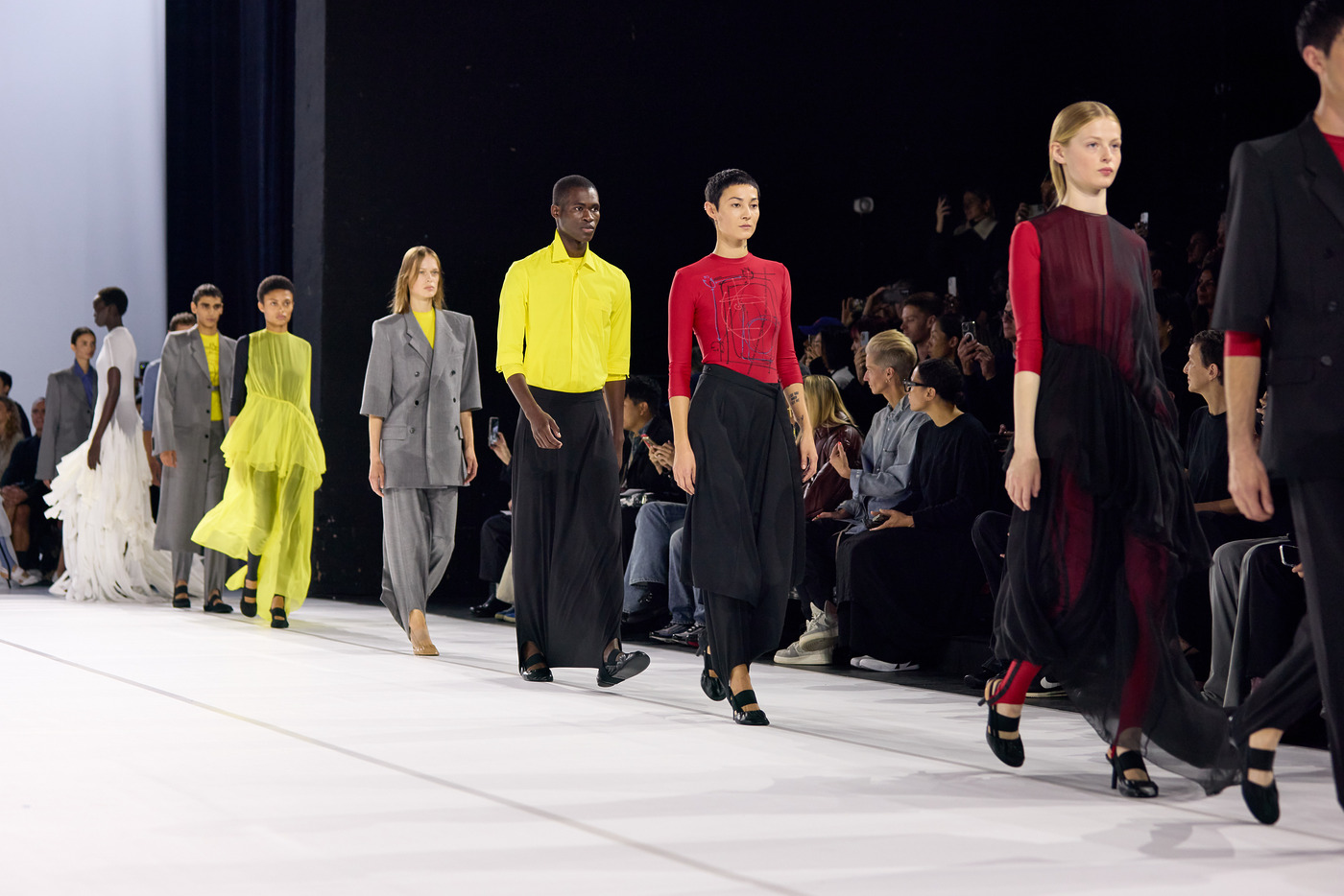 2025 봄/여름 컬렉션을 직접 보며 헬무트 랭을 떠올렸다. 컬러를 배치하는 방식, 시스루 소재, 그리고 몸을 구속하는 듯한 디자인의 오프닝 룩 때문이었다. 실제로 어떤 디자이너로부터 영감을 받는지 궁금하다.