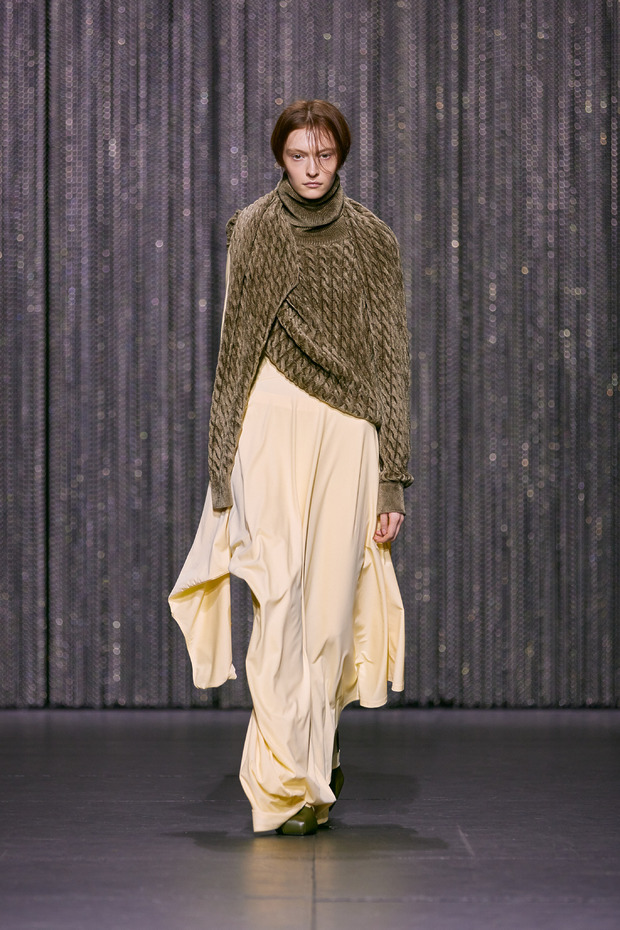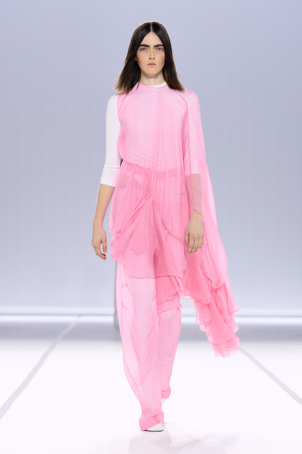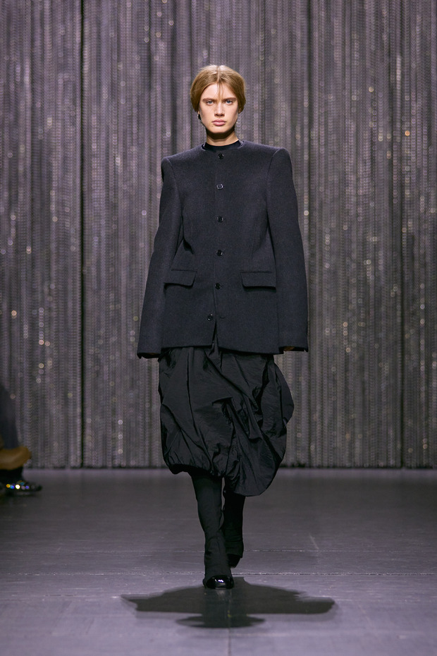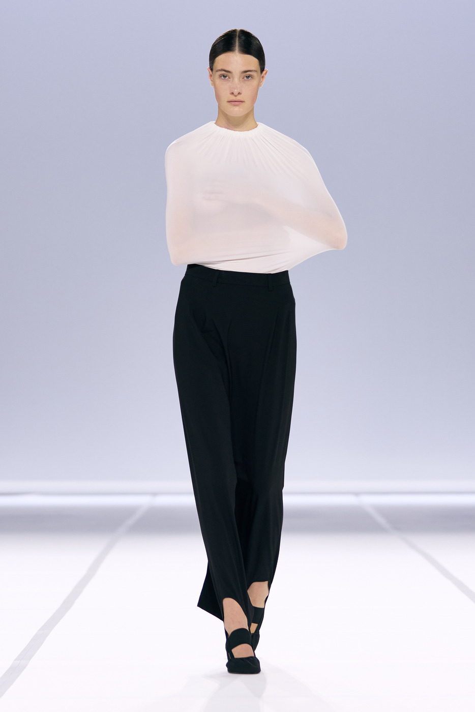 AP 둘 다다. 테일러드 블레이저를 예로 들어보자. 잘 재단된 옷은 주로 딱딱하고 뻣뻣한 인상을 준다. 몸이 특정 자세를 취하게 만들고, 착용자가 특정한 방법으로 움직이도록 만든다. 반대로 비대칭 실루엣 드레스처럼 단지 입고 걷는 것만으로도 아름다운 모습이 연출되는 옷도 있다. 한 가지에 매몰되지 않고, 다양한 형태의 움직임을 표현하기 위해 노력하고 있다. 지난 시즌에는 원단이 공중에 떠 있는 듯한 드레이프 드레스를 선보이기도 했다.