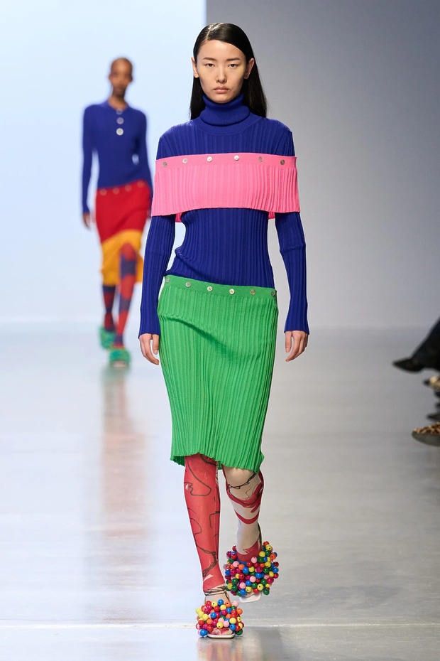 DA 마르지엘라와 비교하는 사람들이 있는지는 몰랐다. 로에베를 연상시킨다는 이야기는 들어봤다. 조나단처럼 우리도 장난스러운 방식으로 패션을 바라보고, 컬러풀한 옷을 선보이니까. 조나단은 무척 뛰어난 디자이너지만, 직접적인 영감을 받은 적은 한 번도 없다. ‘제2의 로에베’처럼 되는 일은 피하고 싶다. 좋아하는 건 레이 가와쿠보와 피비 파일로. 피비 파일로는 갖고 싶은 옷을 만들고, 레이 가와쿠보는 깊은 인상을 주는 옷을 만든다. 양극단에 있는 둘을 꼽고 싶다.