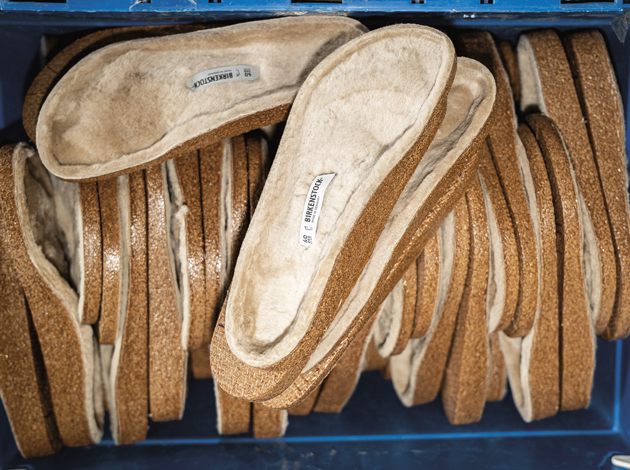 사실 풋베드뿐 아니라 버켄스탁은 모든 분야에 까다로운 기준을 적용한다. 협업할 때도 마케팅을 위한 이유가 전부가 아니다. 올리버 라이헤르트는 “1 더하기 1은 반드시 3이 되어야 한다”고 말하는데, 그처럼 방향성이 일치하면서도 버켄스탁에 새로운 시각을 불어넣는 브랜드와의 협업만 진행한다. 생산 과정에서도 마찬가지다. 1980년대 이후 비용적인 이점을 이유로 신발 산업이 해외 생산으로 기울었을 때도, 버켄스탁은 수직 통합 제조(한 기업이 제품 생산의 여러 단계를 직접 소유하고 통제하는 방식)를 고집해왔다. 독일에 있는 직영 공장 여섯 곳에서 제품의 90% 이상을 조립하고, 나머지 역시 EU 내에서 제작한다. 물론 모든 풋베드는 독일에서 만든다. 공장 설비와 자동화 시스템도 자체적으로 설계하고 제작한 맞춤형 장비가 대부분일 정도다. 이렇게까지 ‘독일 생산’과 수직 통합 구조를 고수하는 이유는 전 생산 과정에 대한 통제력을 확보해 일관된 품질을 보장하기 위함이다.