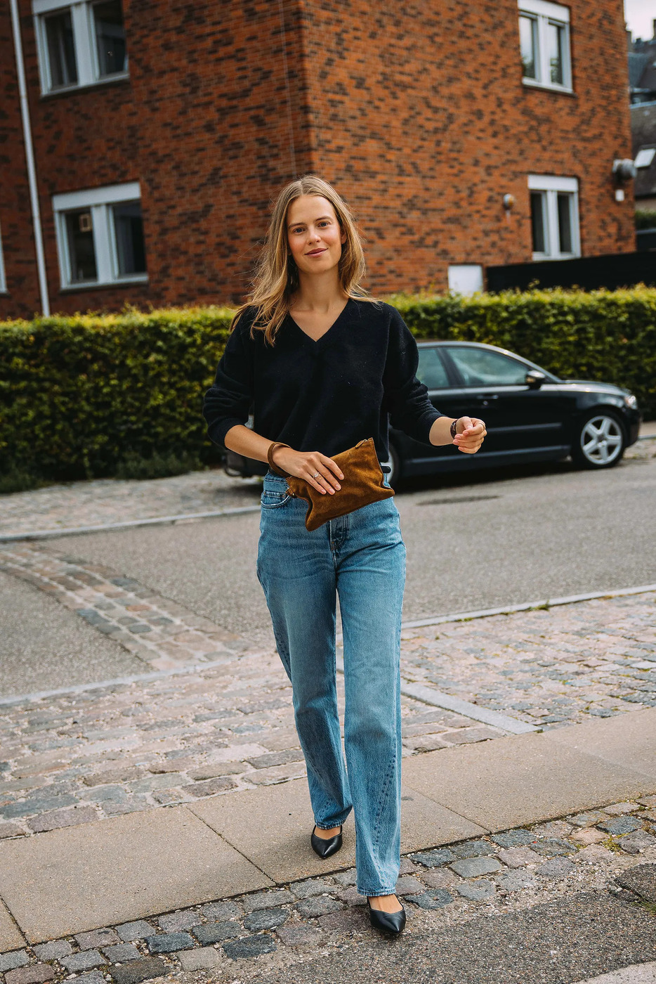 덴마크의 ‘모던 보스 우먼’들이 선택한 건 메리 제인 힐입니다. 프라다 특유의 날렵한 앞코와 안정적인 굽은 오피스에서 단정하면서도 뚜렷한 존재감을 드러내죠. 살짝 해진 스트레이트 진과도 찰떡궁합인데요. 과한 찢김 대신 은은한 디스트레스트 디테일이 정답입니다. 하늘색 셔츠만 더하면 사무실이 단숨에 런웨이로 바뀔 거예요.