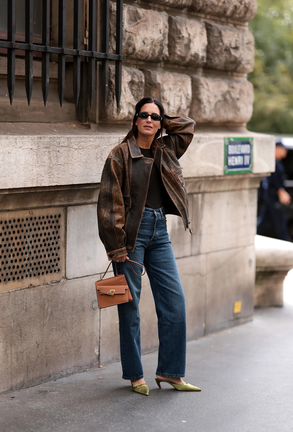 마지막은 파리에서 포착된 공식인데요. 바로 크루 블루 진에 새틴 혹은 가죽 소재 뮬을 매치하는 겁니다. 초콜릿 톤 보디수트와 빈티지 라이더 재킷을 더하면 단숨에 파리지엔 무드로 업그레이드되죠.
