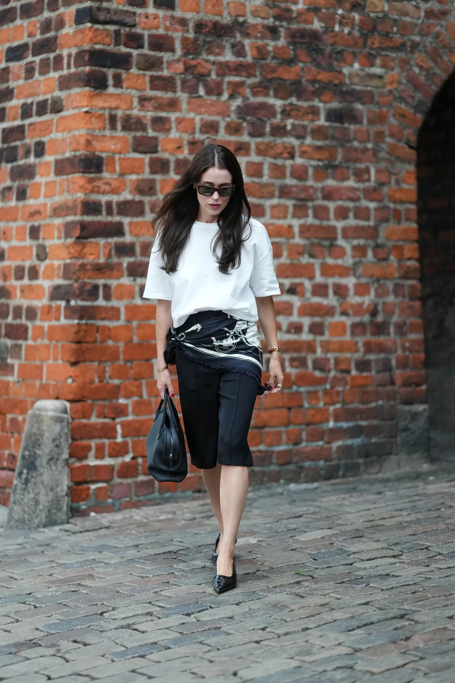 ‘흰 티셔츠에 청바지’는 과장을 조금 보태 100년 뒤에도 유효할 조합입니다. 여유로운 주말 나들이는 물론 출근 룩으로도 적합하죠. 이렇게 클래식한 조합으로 착용할 때 가장 중요한 것은 역시 ‘트위스트’입니다. 그 고유한 시너지를 깨뜨리지 않는 선에서 변주해야 해요. 우선 미니멀한 분위기를 내기 위해 무지 티셔츠와 생지 데님을 꺼내 듭시다. 핏은 오버사이즈만 아니라면 뭐든 괜찮고요. 그리고 허리춤에 화려한 실크 스카프를 묶어주면 끝입니다. 여차하면 스카프를 목이나 머리에 두를 수도 있고요!