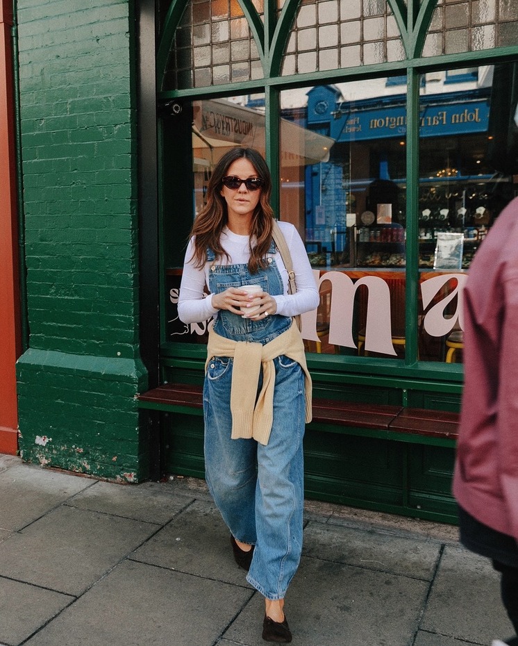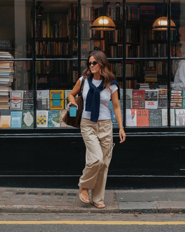 흰 티셔츠와 카고 팬츠, 데님 오버올 같은 평범한 데일리 룩도 니트 하나면 확실히 달라집니다. 어깨에 네이비 니트를 걸치면 무심한 산책 룩도 1990년대 가을 향수를 머금은 영화 속 스타일로 바뀌고, 캐주얼한 오버올을 입고 옅은 색 니트를 허리에 묶으면 일상에서도 계절감을 챙긴 듯 여유로운 멋이 살아나죠. 거창한 아이템은 필요 없어요. 매일 입는 베이식 아이템에 니트 하나만 더해도 가을의 공기를 입는 셈이니까요.