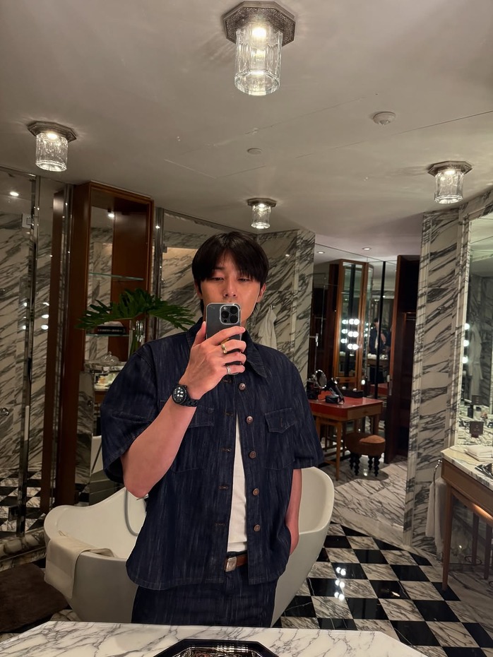 샤넬 파인 주얼리의 시그니처와도 같은 코코 크러쉬를 소화할 때도 마찬가지입니다. 그저 박서준스럽게 옷을 차려입은 뒤, 마침표를 찍듯 반지를 낄 뿐이죠. 캐주얼한 데님 소재 쇼퍼 백에 배색 가죽 재킷을 걸친 룩 역시 샤넬을 ‘일상화’하려는 시도처럼 느껴집니다.