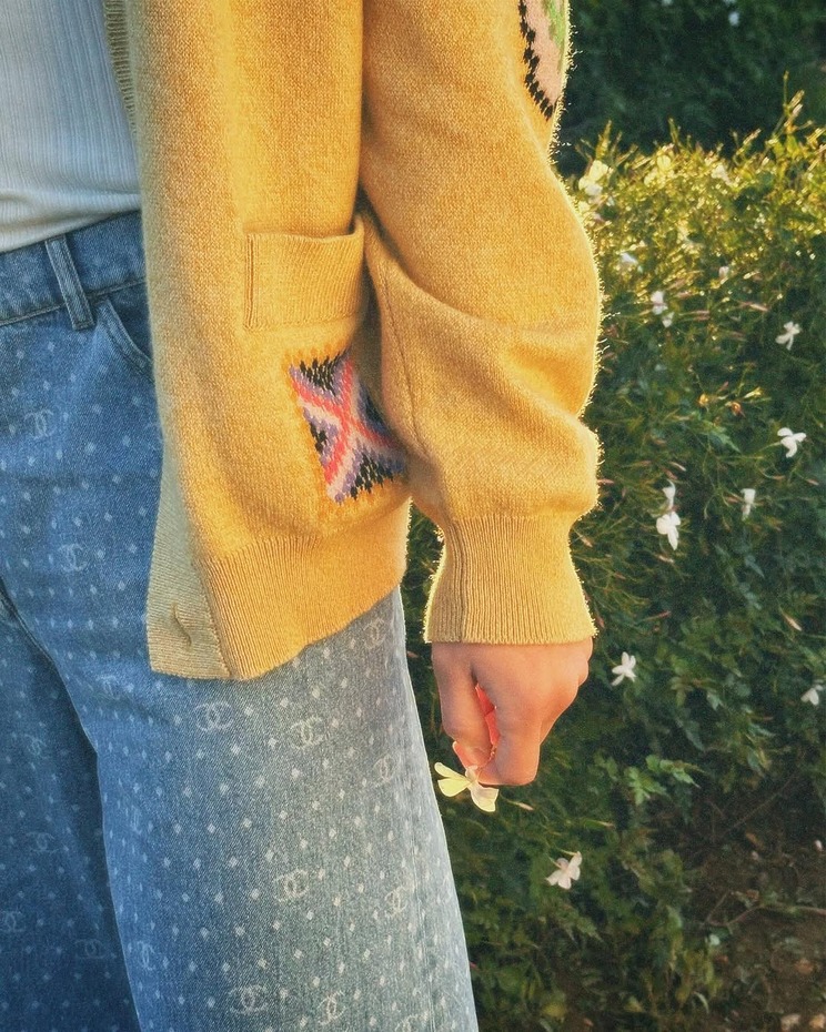 샤넬의 아이코닉한 CC 로고가 자그맣게 새겨진 청바지를 즐겨 입기도 합니다. 함께할 짝으로는 셔츠나 트위드 재킷 등 안전한 선택지가 아닌, 레트로 스타일의 카디건처럼 데일리 웨어에 가까운 옷을 고르곤 하죠. 자신의 팬 미팅 때 공개할 머천다이즈에 샤넬 데님을 매치한 적도 있습니다. “언제나 내가 가진 100%를 보여주려고 노력한다”라는 그의 말이 귓가에 들리는 것 같죠?