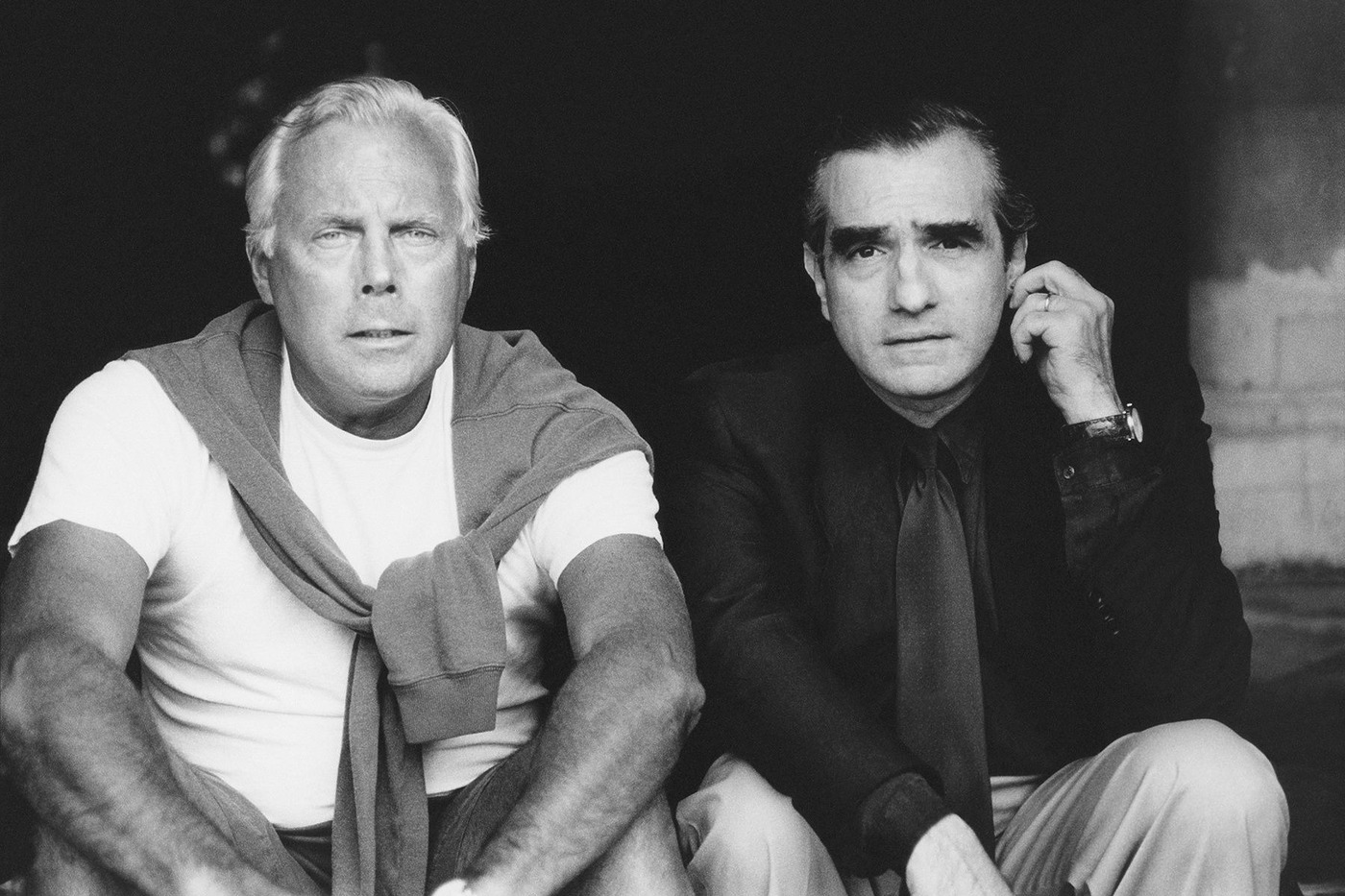 세계적 명성을 얻게 된 계기는 바로 영화였습니다. 그는 <마이애미 바이스(Miami Vice)> 같은 TV 시리즈의 의상도 제작했으며, 할리우드에 사무실을 연 최초의 디자이너였습니다. 그의 미니멀하면서도 세련된 스타일 덕분에 수많은 스타들이 레드 카펫 의상으로 아르마니를 선택했죠. 사진은 1990년 베니스 영화제에서 마틴 스코세이지와 함께.