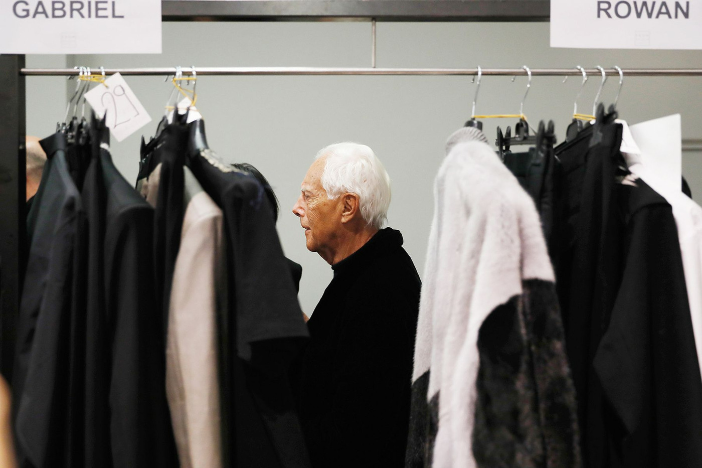 조르지오 아르마니는 항상 스튜디오에 가장 먼저 도착하고, 가장 늦게 떠나는 사람이었습니다. 그는 가장 오랜 시간 활동한 디자이너 중 한 명이었으며, ‘은퇴’라는 단어는 고려조차 하지 않았죠. 일은 그를 건강하게 지켜주었고요. 사진은 팀과 함께 컬렉션 작업을 하는 모습.
