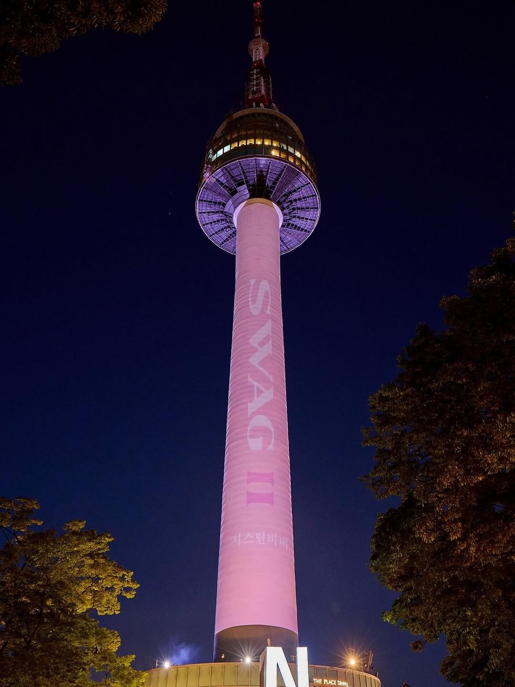 서울 남산에 높게 솟은 N서울타워가 핑크로 물들었습니다. 가까이에서 보면 핑크색 기둥에는 ‘SWAG ll’라고 쓰여 있고, 그 밑에는 ‘저스틴 비버’라고 한글로 적혀 있습니다. 어떤 힌트일까요?