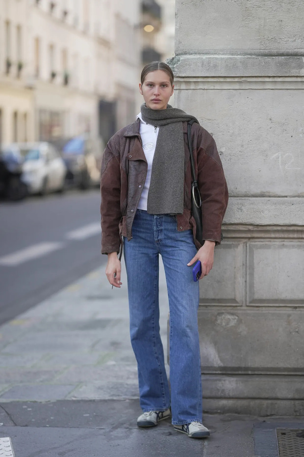 청바지에 흰 스니커즈가 유독 예뻐 보이는군요. 레더 재킷의 긴장감, 터프함과 대비되어 편안한 매력이 돋보입니다. 더 멋있어 보이려면, 레더 재킷에서 손때 묻은 세월감이 느껴져야 해요. 자연스러운 주름과 바랜 질감이 가죽 특유의 깊이를 드러내거든요. 이른 시간 안에 흉내 내기 어려운 멋이 살아나는 거죠. 다행히 이번 시즌에는 길이 든 듯한 레더 재킷이 많이 발매되었습니다. 빈티지 숍을 들르는 것도 방법이고요. 그러니 너무 반질반질하고 새것 같은 레더 재킷은 잠시 넣어두세요.