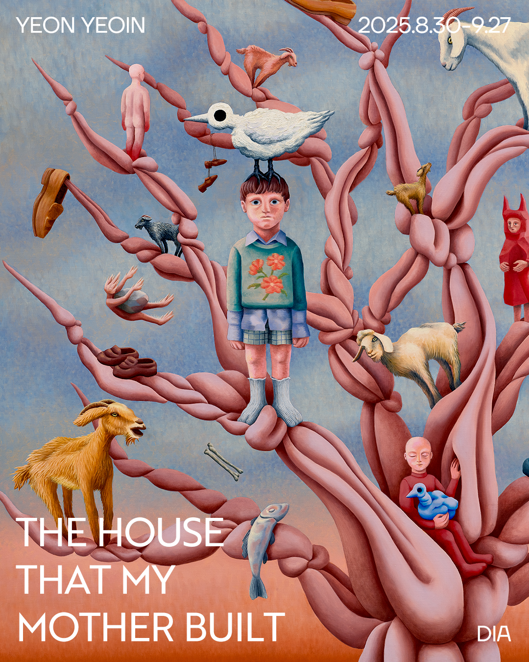 연여인은 최근 박찬욱 감독의 <어쩔수가없다> 포스터 작업으로 잘 알려졌지만, 그 전에 자신만의 세계를 온전히 구축해 상업적인 영역이나 순수 미술 안에서 유연하게 풀어낸 작가다. 덕분에 여러 아트 시네마의 포스터는 물론 젠틀몬스터를 비롯한 브랜드 협업이 이어지고 있다. 작가가 오랜만에 개인전 <The House That My Mother Built>를 디아 컨템포러리에서 열었다. 그림책 컨셉의 개인전은 연여인이라는 작가를 접하기 좋은 기회다.