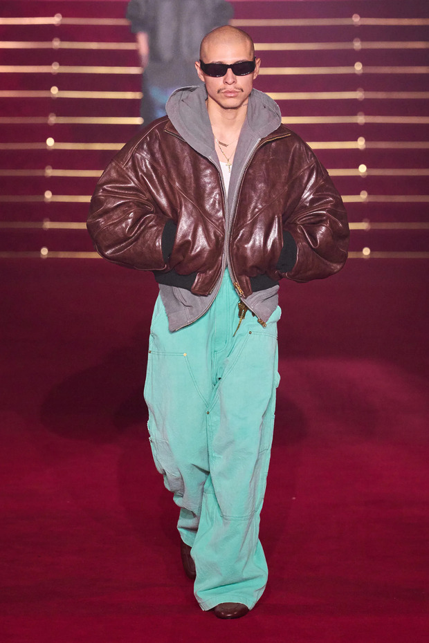 “가죽 봄버 재킷? 가을이라고 새삼스럽게?”라고 하실지 모르지만, 올가을은 유난히 이 아이템의 전성기입니다. 셀린느의 2026 S/S 컬렉션에서는 어깨를 두 배로 키운 빈티지풍 가죽 재킷, 돌체앤가바나 쇼에서는 말 그대로 몸을 삼킬 듯한 초대형 버전이 등장했죠. 게다가 윌리 차바리아와 웨일스 보너는 초콜릿 빛깔의 거대한 봄버 재킷을 선보였고요. 유행은 돌고 돈다지만, 이번엔 봄버 재킷이 패션계를 접수한 분위기입니다.