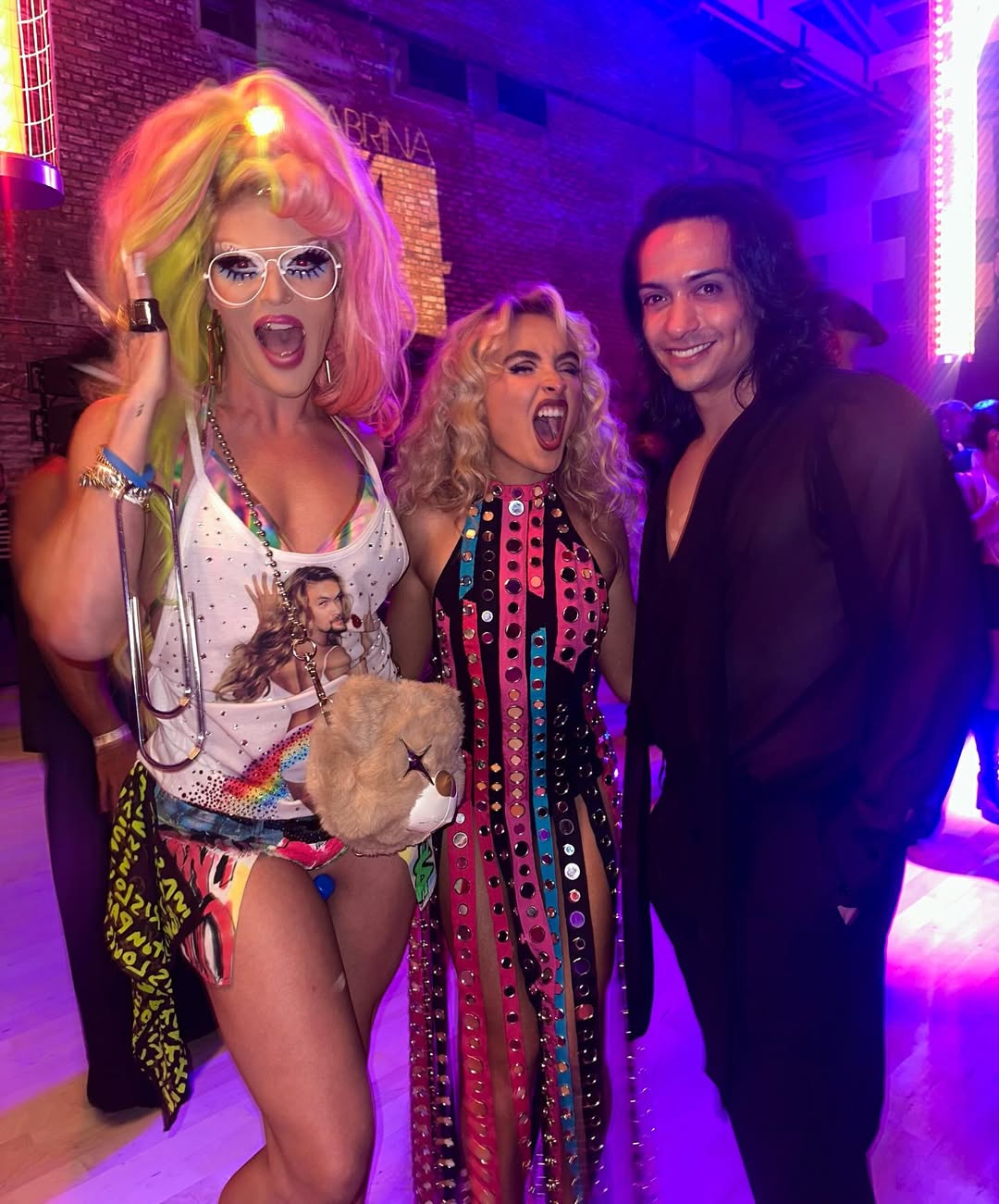 드래그 퀸 윌리엄 벨리는 파티에서 카펜터와 찍은 사진을 공유했습니다. 카펜터의 룩을 살펴볼까요? 그녀는 화려한 크레이프 소재의 보디수트를 입고 있습니다. 핑크와 블루 프린지 패널부터 화려한 거울 장식까지, 방금 무대를 마치고 내려온 것 같죠. 이 의상은 빈티지 밥 맥키 홀터넥 보디수트입니다. 팝 스타 셰어가 1975년 티나 터너와 함께 출연한 <셰어 쇼(The Cher Show)>에서 입었던 것으로, 카펜터가 다시 입은 건 셰어에게 바치는 찬사와도 같죠. 사실 이날 파티 ‘사브리나 54’도 1970년대 유명 나이트클럽 ‘스튜디오 54’를 현대적으로 재해석한 컨셉이었습니다.