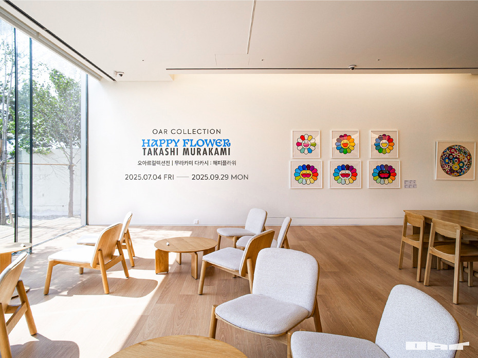 알록달록 웃음을 머금은 ‘해피 플라워’를 보다 보면 절로 미소가 지어집니다. 일제히 관람객을 향해 웃고 있는 꽃들은 “이래도 안 웃을 거야?”라며 능청을 떠는 것도 같죠. 그런데 더 나아가 슬픔이나 불안을 느낄 수 있습니다. 부정적인 감정을 숨기기 위해 일부러 크게 웃을 때도 있으니까요. 강박적으로 반복된 꽃의 미소는 소비사회가 강요한 행복을 풍자합니다. 이렇게 평평하지 않은, 다층적인 감정을 불러일으키는 무라카미의 ‘해피 플라워’는 그의 미학 ‘슈퍼플랫(Superflat)’을 상징해요. 이는 우키요에에서 애니메이션, 오타쿠 미학으로 이어지는 ‘평면성’이 강조된 일본의 시각문화 정체성이죠. 또한 예술과 소비문화의 경계를 허물고 모든 것을 하나의 평면 위에서 동등하게 바라보는 새로운 시각을 제시합니다. 이번 전시에서는 그 예로 루이 비통과의 협업으로 제작된 한정판 가방 3점과 대표 판화 작품 27점까지 총 30점을 선보입니다. 장소 오아르미술관 예매 홈페이지 인스타그램 @oar_museum