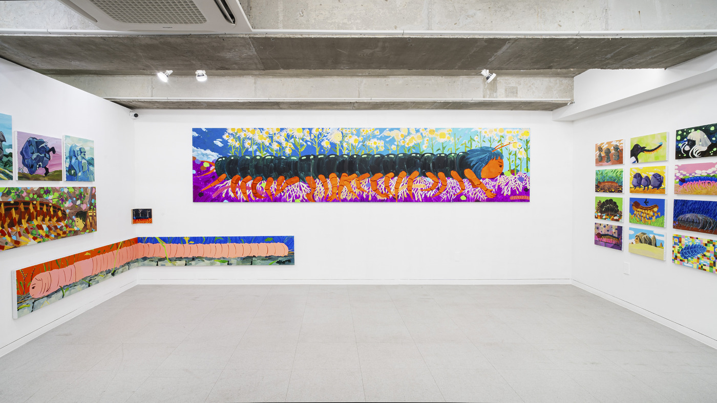 불안은 쾌락 추구를, 이는 중독을 낳습니다. <도파민네이션>의 저자이자 스탠퍼드대학교 정신의학 교수인 에나 렘키는 “고통을 찾아내어 삶에 끌어들여야” 중독을 끊을 수 있다고 말하죠. 김허앵 작가는 회화적 상상을 통해 자신의 두려움을 직면합니다. 산기슭 작가의 집에 수시로 출몰하는 곤충을 캔버스에 끌어들인 거죠. 그렇게 혐오의 대상이었던 곤충은 의인화되어 귀여운 모습으로 다시 태어났습니다. 한편, 어딘가로 나아가고 있는 곤충들은 희망의 미래로 우리를 이끄는 듯합니다. 작품에 등장하는 다지류는 지구상 최초로 육상에 올라온 동물로, 실제 강한 생명력을 지녔죠. 작가는 여기서 영감을 얻어 과거에서 현재, 미래를 횡단하는 생명체로 이들을 그려냈습니다. 작가의 이전 전시 <나의 지구를 지켜줘>가 암울한 미래를 비췄다면, 이번 <Dear morning>은 다시 아침을 기대하게 하는 새로운 영감을 줄 것입니다. 전시는 9월 21일까지. 장소 스페이스 윌링앤딜링 예매 무료 인스타그램 @space_willingndealing