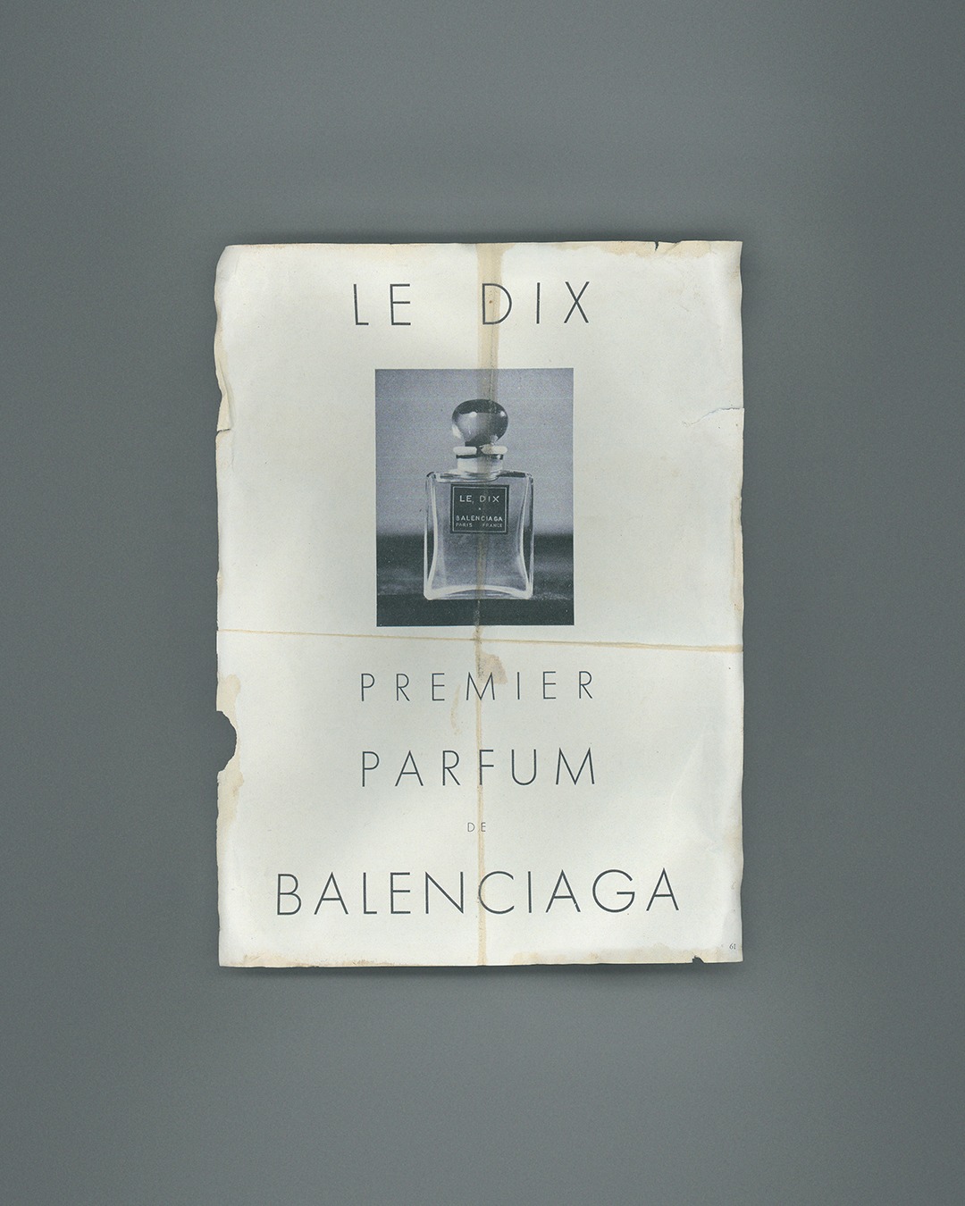 15년 전, 발렌시아가 기록 보관소 직원들은 메종의 데뷔 향수 ‘르 디스(Le Dix)’ 초판본을 찾기 시작했습니다. 노력 끝에 마침내 미국의 개인 수집가가 소유하고 있던 1947년산 르 디스를 발견했죠. 더불어 크리스토발 발렌시아가가 향수 패키지 디자인을 묘사한 스케치도 찾았습니다.
