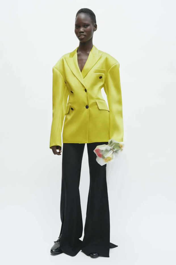 캐롤리나 헤레라는 플레어의 품은 줄이되, 길이를 과감하게 늘렸습니다. 신발이 안 보일 정도죠. 페벤(Feben)은 바닥까지 퍼지도록 슬릿 디테일을 더했고요.