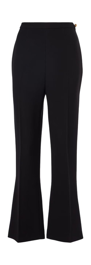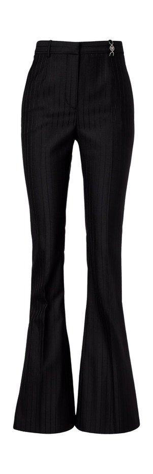 장식을 더한 브랜드들도 있습니다. 앨리스 올리비아는 플레어 끝단을 걷어 올려 접은 뒤 박음질한 모양새의 스티치 디테일을 더했습니다. 엘리 사브는 지퍼를, 호프 포 플라워는 바지 옆 라인의 가장자리를 따라 발끝까지 태슬을 더했죠.