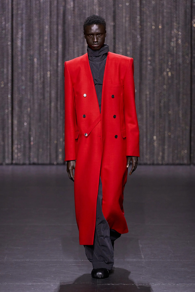 강렬한 한 방을 원한다면, 빨간 코트가 정답입니다. 태생부터 화려한 색깔이지만, 검정이나 회색을 적절히 섞어준다면 존재감을 중화할 수 있죠. 알랭 폴의 룩이 완벽한 예입니다. 톰 포드가 선보인 것과 비슷한, 버건디 색상의 코트는 출근용으로도 적합합니다.