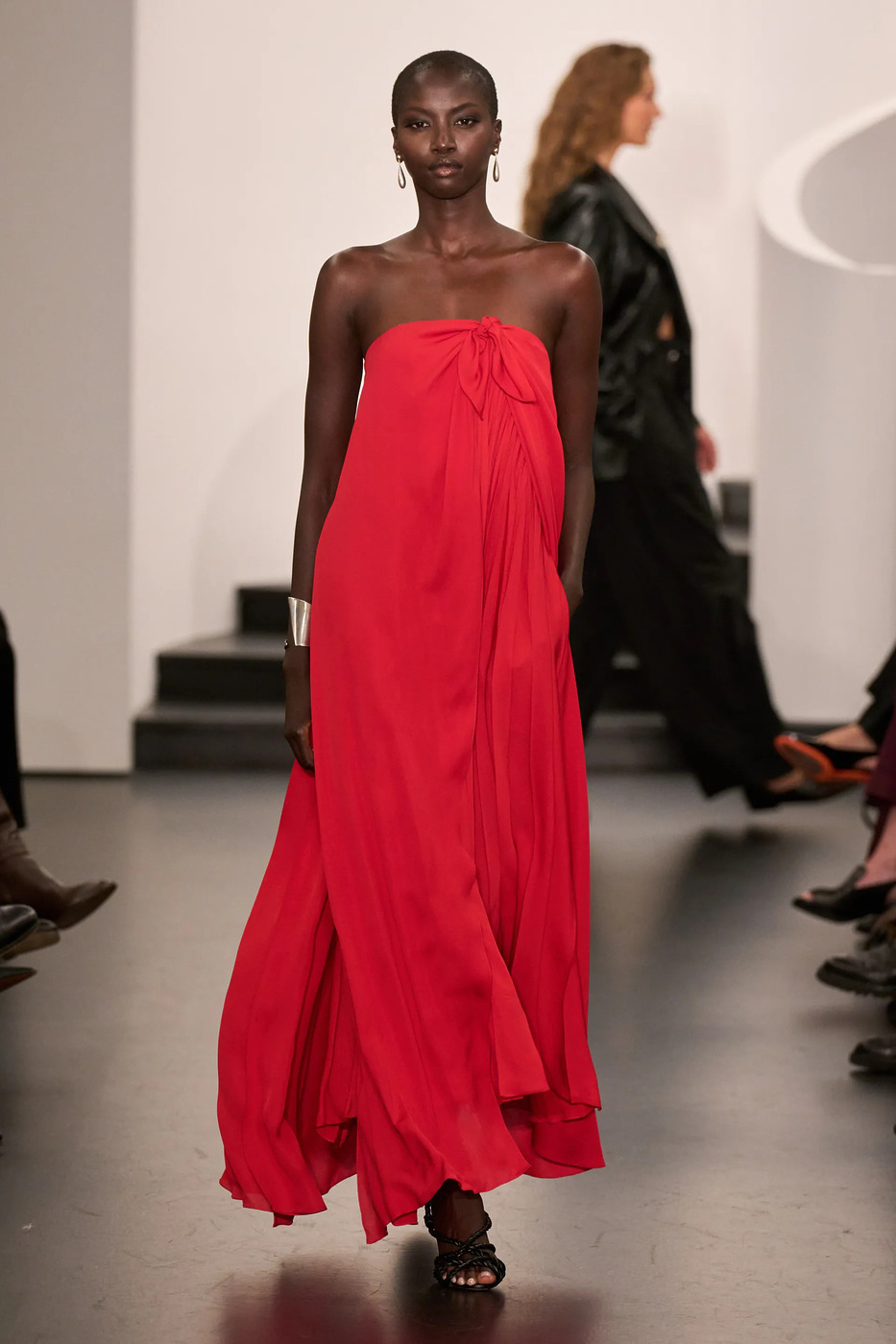 쇼의 구성 역시 흥미로웠습니다. 매 룩마다 2명의 모델이 등장했거든요. 선두에 선 모델은 밝은색의 룩을 입고 있었습니다. 몇 발짝 뒤에서 걷던 모델은 같은 룩의 ‘올 블랙’ 버전을 입고 있었죠. 힐러리 테이모어는 이 올 블랙 룩들을 ‘그림자’라고 불렀는데요. 이 그림자들이 상징하는 것은 우리가 지나온 모든 역사, 시스템, 그리고 정책이었습니다. 지나온 길을 똑바로 응시하는 동시에, 낙관적인 태도로 미래를 바라봐야 한다는 메시지를 던진 것이죠. 동시에 브랜드의 영역을 확장하기 위한 선택이기도 했습니다. 콜리나 스트라다의 장기인 화려한 컬러와 프린트를 자랑스레 내보이는 동시에, 그게 브랜드의 전부가 아니라는 사실을 덤덤하게 증명했거든요.