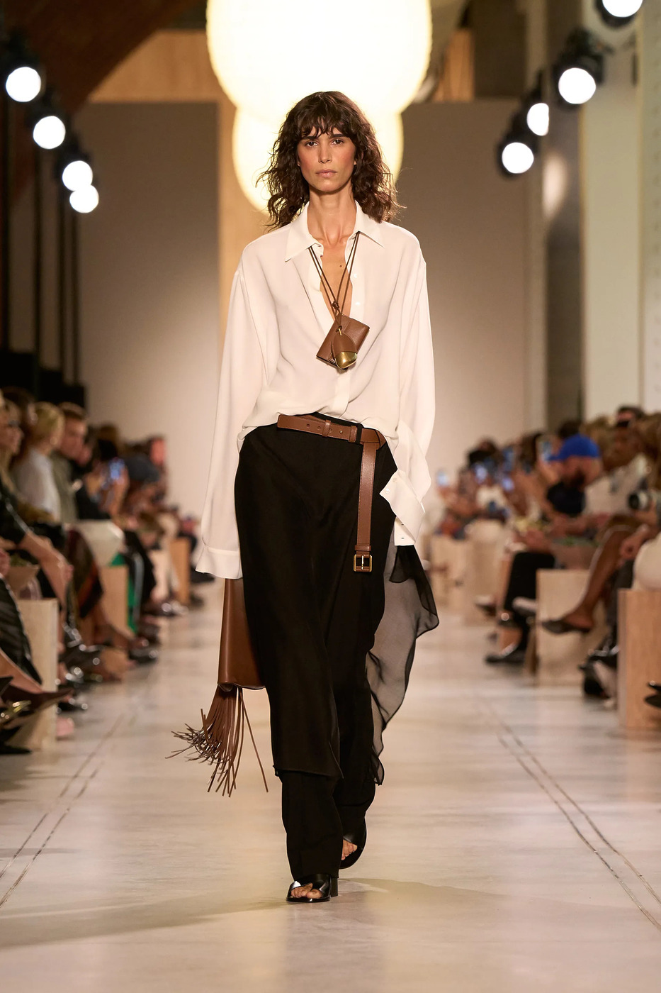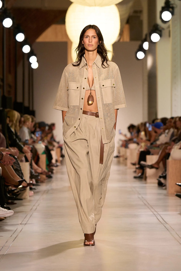 마이클 코어스는 “자연은 언제나 저를 놀라게 합니다”라며, 모로코와 미국 서부 등을 여행하며 받은 영감을 바탕으로 이번 컬렉션을 완성했다고 밝혔는데요. 가장 눈길을 사로잡은 것 역시 테마에 걸맞은 컬러였습니다. 다양한 채도와 명도의 브라운이 반복적으로 등장했거든요. 뉴욕 롱아일랜드에서 태어나 평생을 ‘시티 보이’로 살아온 마이클 코어스는 특유의 도회적인 터치를 가미해 더없이 세련된 올 브라운 룩을 연달아 선보였습니다. 그는 세계 각지에서 심상치 않은 기후변화가 감지되고 있다며, 지나치게 타이트한 옷의 실용성에 의문을 품게 됐다고 이야기하기도 했는데요. 그 영향인지, 전체적으로 벙벙한 실루엣이 눈에 띄었습니다. 쇼 초반부에 재생된 닉 드레이크의 곡, ‘Day is Done’의 가사가 더욱 의미심장하게 느껴졌죠. “새가 떠나간 뒤에는, 당신의 것이라 할 수 있는 것은 아무것도 없다네. 당신이 집이라고 부를 수 있는 곳은 온데간데없다네.” 어쩌면 마이클 코어스는 이번 컬렉션을 통해 우리에게 경고를 던진 걸지도 모르겠습니다.