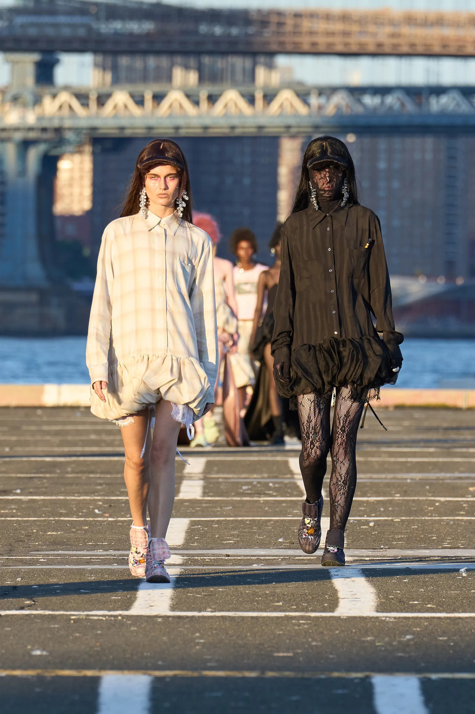 콜리나 스트라다의 2026 봄/여름 컬렉션 쇼는 맨해튼 최남단의 헬기 착륙장에서 열렸습니다. 사방이 뚫려 있어, 길을 지나가거나 근처 건물에서 근무하는 사람 모두가 쇼를 관람할 수 있었죠. 콜리나 스트라다를 단순한 패션 브랜드가 아닌, 사회적 이슈에 대한 경각심을 높이기 위한 플랫폼으로 규정하는 힐러리 테이모어다운 선택이었죠.