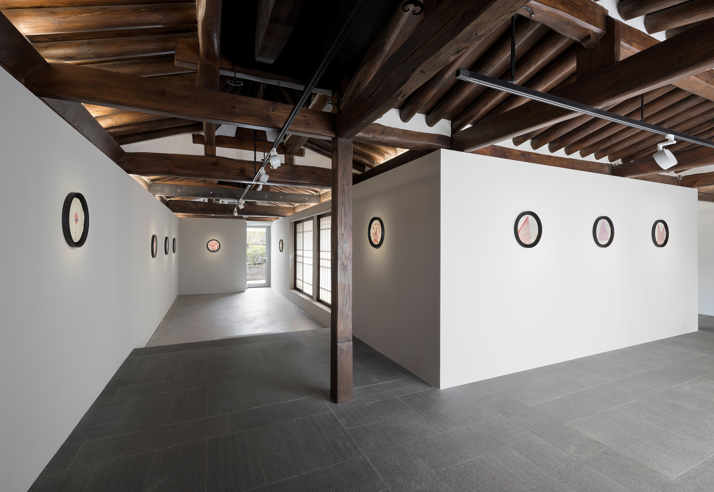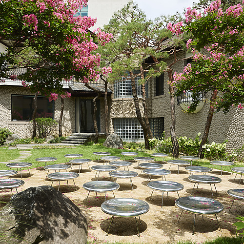부르주아가 만약 국제갤러리의 한옥 공간을 봤다면 분명히 무척 좋아했을 겁니다. 국제갤러리 K3가 붉은 실로 공간 전체를 둘러싼 것처럼 드라마틱하다면 한옥 전시장은 보다 고즈넉합니다. 여기에는 1994년에 처음 작업한 이후 지금까지 단 한 번만 공개된 커피 필터 드로잉이 걸려 있습니다. 동그란 커피 필터에 작가가 그린 구상, 추상 드로잉들이 공간에 생명력을 불어넣습니다. 부르주아는 작업을 할 때 손에 잡히는 어떤 종이든 활용했는데요. 더욱이 커피 필터라는 가사적인(Domestic) 재료는 여성과 집안일의 관계를 유희적으로 비판합니다. 시계를 닮은 커피 필터에 그린 드로잉들이 꿈틀거리고 움직이면서 말없이 내밀한 이야기를 건넵니다. 그러면서 부르주아라는 예술가를, 여성을, 그리고 그녀를 보고 있는 나 자신을 보도록 이끕니다.