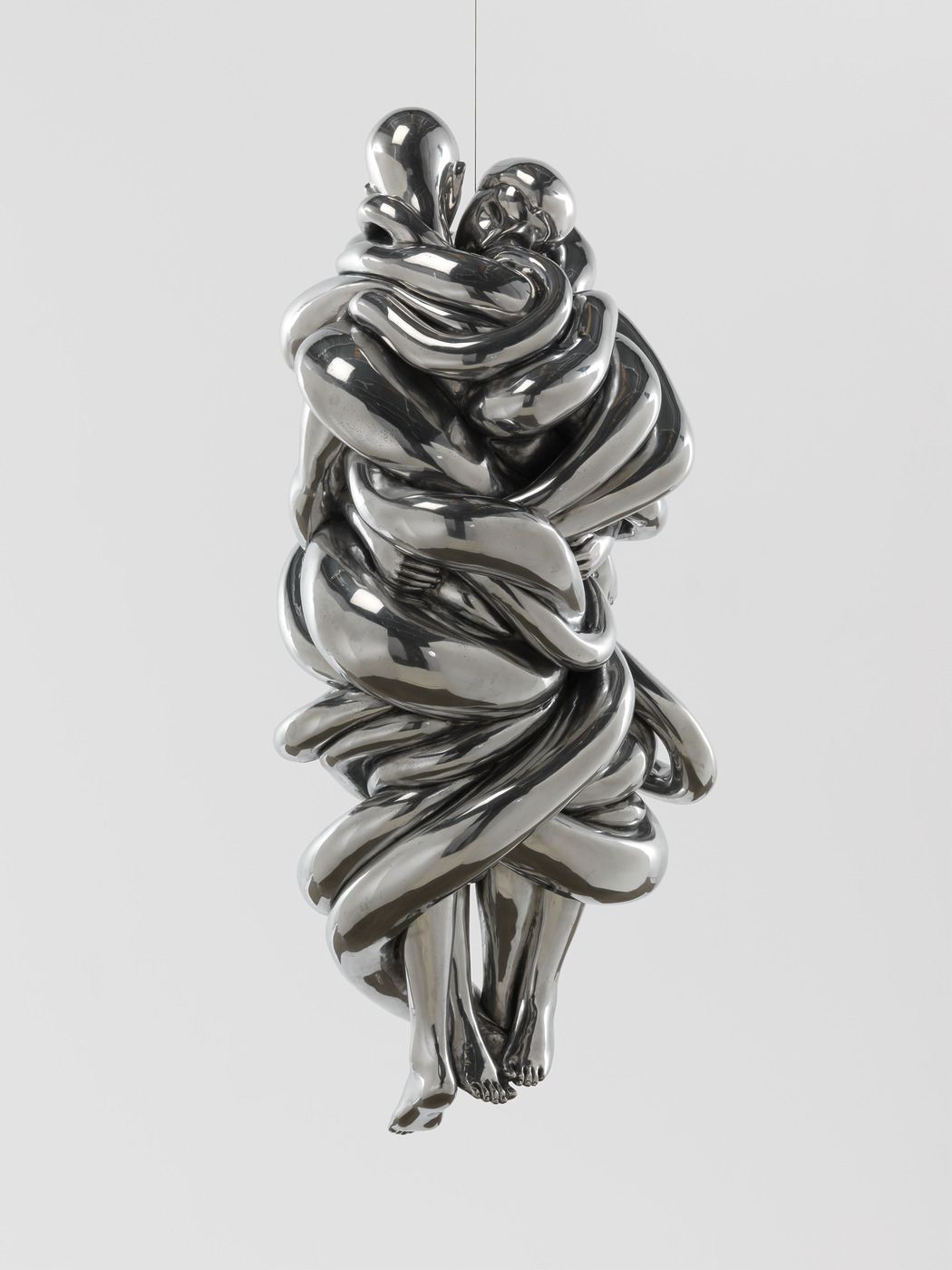이토록 유려한 드로잉의 흐름에 방점을 찍는 건 조각의 몫입니다. 부르주아는 원래 조각가였고, 그래서 형식적으로 작가를 대표하는 작품들입니다. 하지만 이것이 더욱 절묘하게 느껴진 건 조각이 각각의 드로잉이 이야기하는 바와 만나고 있기 때문인데요. 제리 고로보이에 대한 굳건한 믿음은 서로의 손을 맞잡고 있는 핑크색 대리석 조각으로 발현됩니다. 시간을 향한 부르주아의 성찰은 2개의 물줄기에서 끊임없이 흘러나오는 물이 무한을 상징하는 8자를 그리며 만나는 형상의 추상 조각으로 이어지죠. 또 유무형의 다양한 관계에 대한 생각은 남자와 여자가 서로 뒤엉킨 채 천장에 매달린 은색 알루미늄 조각에 가닿습니다. 부르주아는 같은 주제를 다른 매체에 완벽하게 담아내며 같음과 다름의 미학을 만들어내는 솜씨를 발휘했습니다.