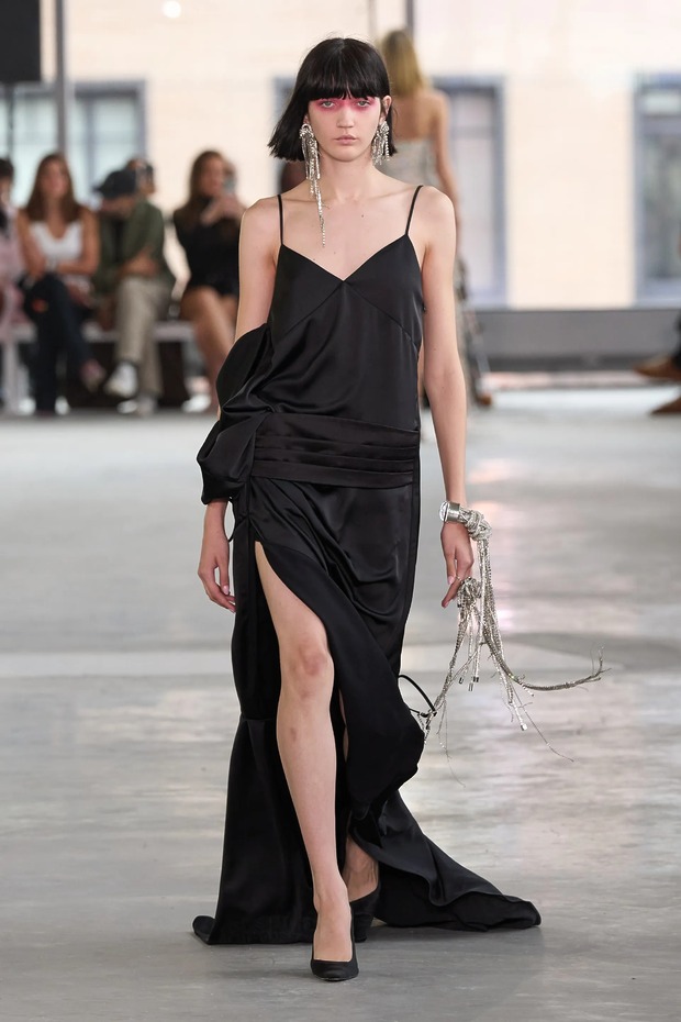 10년 전 파티복으로 처음 컬렉션을 선보였던 아레아의 새로운 시작으로 나쁘지 않았습니다. 나이트클럽의 사진 속 인물들을 떠올리며 그가 만든 룩은 포인트가 있었습니다. 화려한 끈 장식으로 만든 초미니스커트와 크롭트 방도 톱, 뒤엉킨 듯한 크리스털 끈으로 만들어진 스커트는 쇼걸까지는 아니어도 화려한 밤은 예상되더군요. 아레아의 주요 아이템인 데님을 활용한 룩도 눈에 띄었습니다. 슬림 진 위에 조츠를 겹쳐 입은 듯한 스타일, 슬래시 처리로 검은색 반짝이 안감이 보인 와이드 레그 진, 바지를 엮어 만든 기묘한 리본 모양 미니스커트까지. 개인적으로 화려한 제기차기 같은 룩으로 마무리된 건 아쉬웠지만, 블랙의 이브닝 가운 시리즈로 이어지는 전개는 마음에 들더군요. 애번이 보여줄 뉴욕 여성의 삶이 약간 궁금해졌습니다.