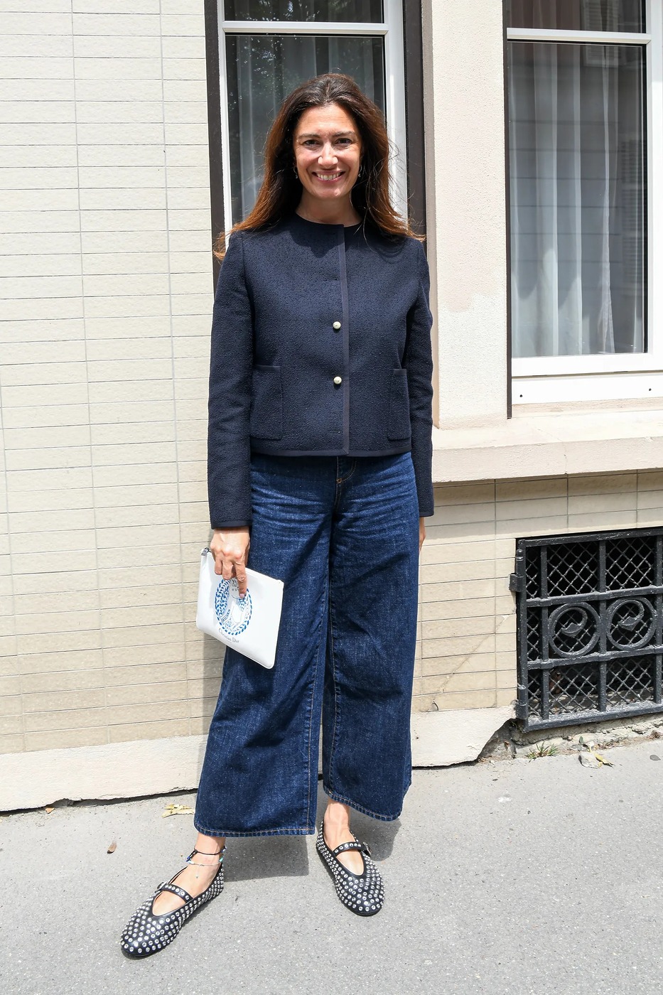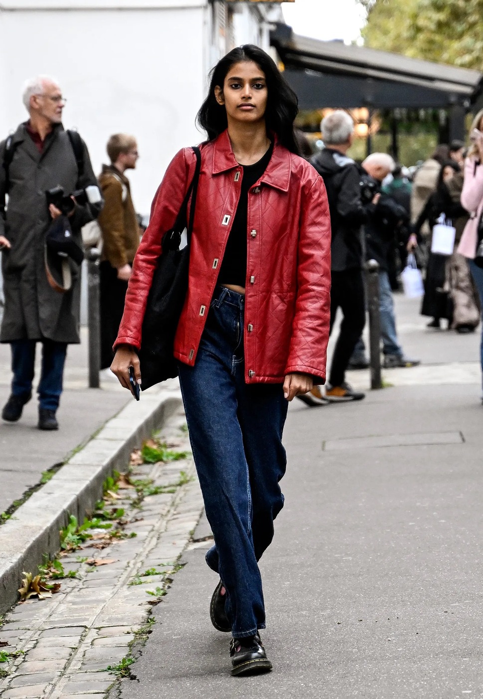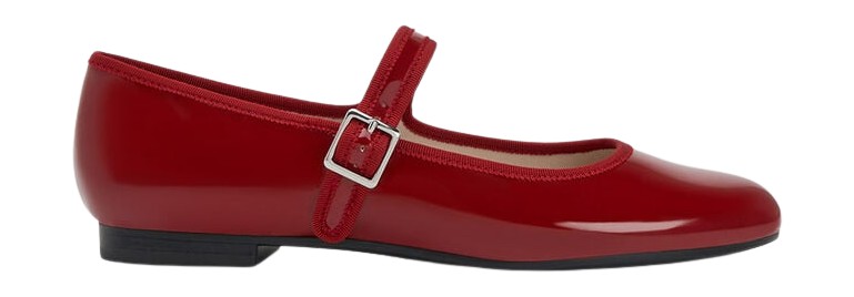 체리 레드 컬러 메리 제인은 단숨에 시선을 끄는 힘을 지녔습니다. 네이비 블레이저와 1990년대식 스트레이트 진에 매치하면 심플하면서도 에너제틱한 데일리 룩이 완성돼요. 플랫으로도 충분히 파워풀하다는 증거!