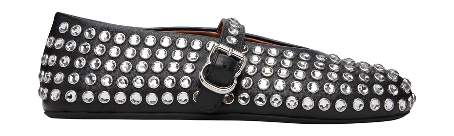 알라이아블랙 스트라스 램스킨 발레리나 플랫 슈즈