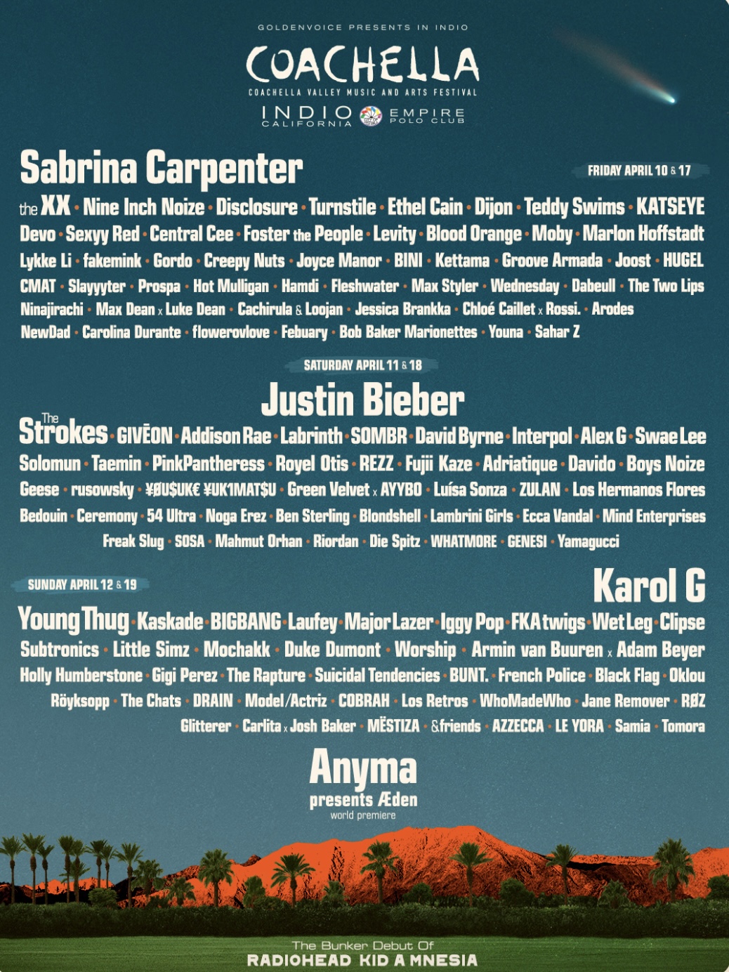 이 외에도 사브리나 카펜터, 저스틴 비버, 카롤 G, 아니마 등이 헤드라이너로 이름을 올려 기대감을 높이고 있습니다. 2026 코첼라 페스티벌, 함께하고 싶다면 미리 일정을 체크해두세요!