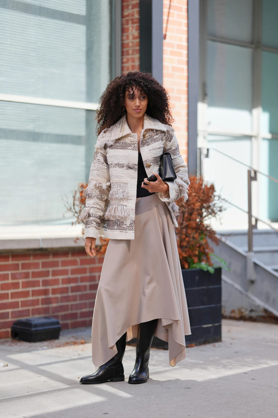 미니스커트와도 훌륭한 궁합을 자랑하더군요. 승마 부츠의 긴 길이 덕분에 별다른 노력 없이 늘씬한 비율을 완성할 수 있다는 점도 빼놓을 수 없고요. 블랙이나 베이지처럼 ‘가을’ 하면 가장 먼저 떠오르는 색으로 온몸을 도배하는 것은 물론, 패턴을 더한 치마를 활용해 레트로 무드를 연출하는 것도 가능합니다.