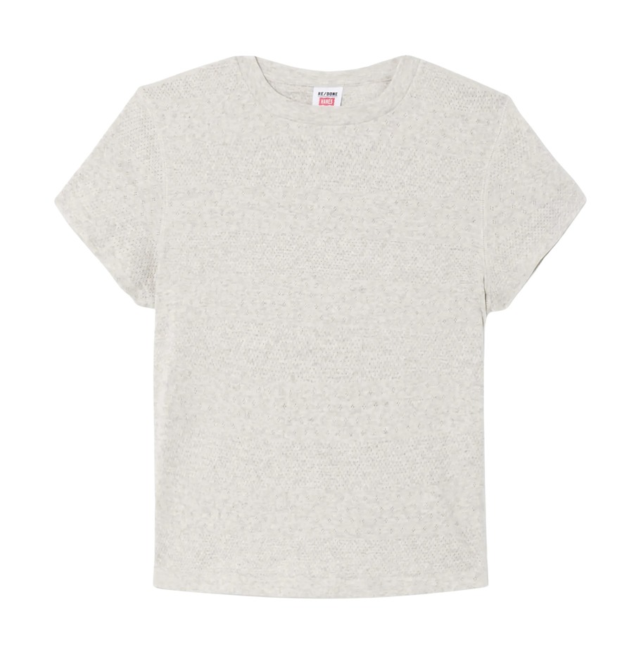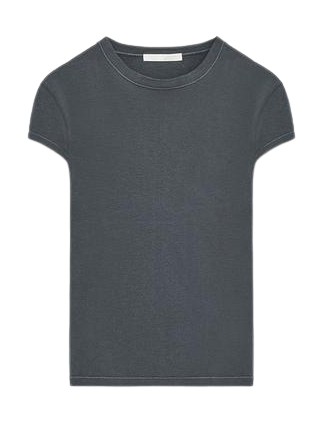 하의 실루엣이 타이트해지면 상의 실루엣은 헐렁해지기 마련이지만, 베이비 티셔츠는 여전히 건재합니다. 벨라 하디드의 룩을 보면 눈치챌 수 있듯, 의외로 스트레이트 팬츠와 매치했을 때 시너지가 큽니다. 군더더기 없는 하의 덕분에 상체의 작은 면적이 도드라져 전체적으로 균형이 좋아 보이는 거죠.