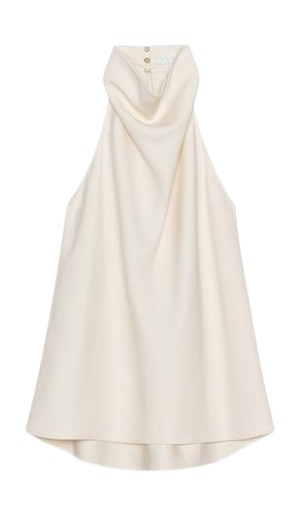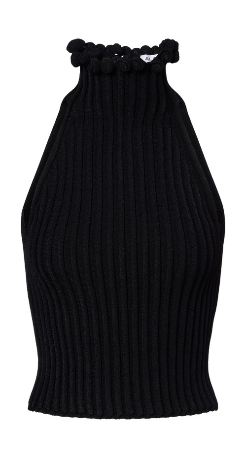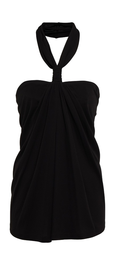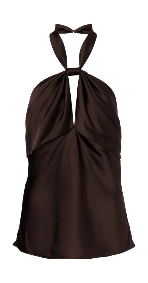 홀터 톱은 또 다른 축을 이룹니다. 몇 달 전 <보그>는 이제 배꼽보다 골반이나 등을 더 많이 드러내게 될 거라고 전망했는데요. 그 역할을 홀터 톱이 해내고 있죠. 베이비 티셔츠가 걸리시한 당당함을 보여주는 노장이라면, 홀터 톱은 성숙한 관능을 제안하는 신예라고 할까요. Y2K 시대에서 같이 건너와 지금은 2025년 가을 옷장에서 각자 맡은 바 임무를 다하며 하모니를 이루고 있죠.