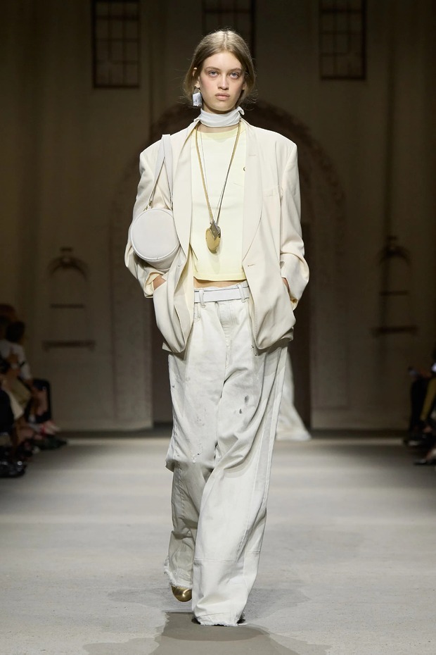 코치의 새봄은 낙관주의로 가득했습니다. 스튜어트 베버스 역시 WWD와의 인터뷰에서 “핵심은 긍정적이고 낙관적으로 미래를 내다보는 것”이라고 말했죠. 그가 말하는 낙관주의는 투박하지만 따뜻했습니다. 낡은 빈티지 가죽, 패치워크 체크, 닳은 업사이클 워크웨어 팬츠 등 익숙한 것, 즉 오래된 것을 들고 나왔죠. 1970년대에서 1990년대까지 희망으로 부풀었던 시대 말이에요. 거기에 베버스는 뉴욕이란 도시가 깨어나는 아침을 떠올렸다고 했습니다. 북적이는 도시가 텅 빈 시간대에 비치는 빛의 질감 등을 구현하고 싶었다고요. 화이트, 크림, 햇빛에 바랜 듯한 컬러감은 고스란히 이번 컬렉션에 반영되었습니다. 짧은 더블브레스트 코트, 작아진 청 재킷, 올이 풀린 팬츠, 발레 슈즈 같은 샌들도 등장했고요. 우리의 희망은 아이들이라는 듯 똑딱이 동전 지갑, 하트 모양 로켓, ‘My Love’, ‘Forever Yours’라고 적힌 은색 태그로 목걸이를 만들었죠.