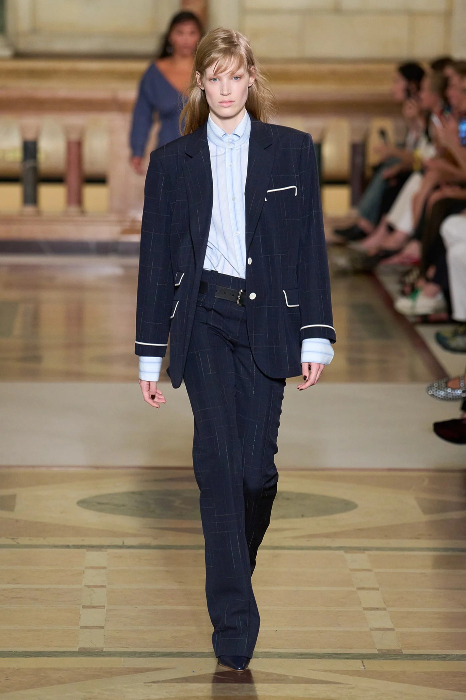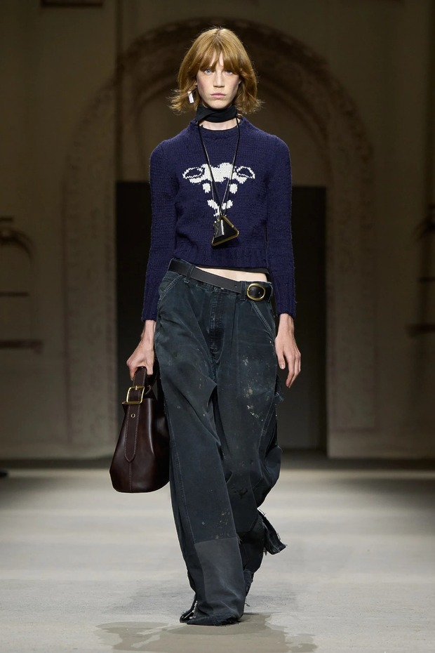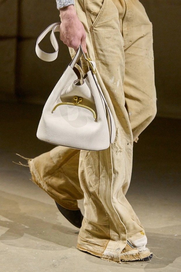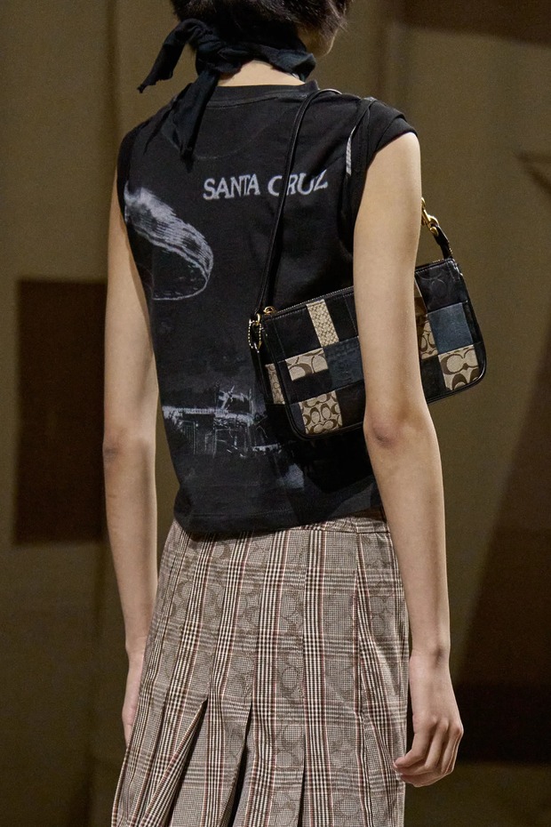 물론 코치의 정체성은 굳건했습니다. 가죽 슬리브리스 블랙 롱 코트와 베스트, 거칠게 가공한 데님, 긁힌 듯한 부츠가 그 증거였고요. 상의는 더 작게, 하의는 볼륨감을 키워 블레이저와 바이커 재킷은 쪼그라들었고, 팬츠는 여전히 루스하고 길었죠. 브랜드의 시그니처인 키스락을 활용한 다양한 백도 선보였고요. 사람들이 코치에 원하는 것과 코치가 가야 할 방향을 놓치지 않는 것. 이번에도 베버스는 둘 다 해낸 듯합니다.