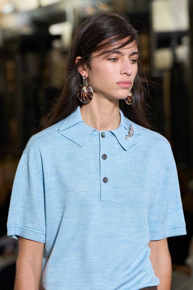토리 버치의 말입니다. 그녀는 현재의 혼란을 미끈한 미니멀리즘으로 정리하기보다 일상에서 작은 희망을 찾아 나서고 있습니다. 종이접기 같은 폴로셔츠의 칼라, 펜던트 목걸이가 통과할 수 있도록 슬릿이 2개 달린 재킷의 스탠드업 라펠, 그리고 시드 비즈 장식으로 완성한 리브 스웨터의 디테일이 대표적이었죠. 사진에서 보이지 않는 디테일도 있는데, 재킷의 뒤트임입니다. 지퍼를 당기면 재킷의 실루엣이 변하도록 되어 있었는데, 이런 작은 디테일은 일상의 재미로, 삶의 희망으로 읽혔습니다.