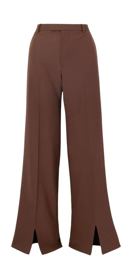 사이드 슬릿 브라운 팬츠×힐 샌들