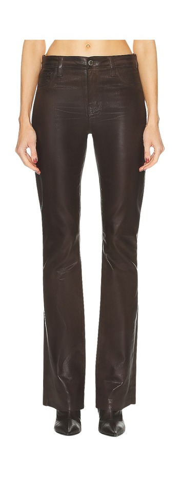 애슬레저 무드에도 브라운 팬츠는 빠질 수 없습니다! 허벅지를 감싸면서 무릎 아래로 넓어지는 플레어 핏 팬츠를 블랙이 아닌 브라운으로 고르면 끝이죠! 가죽 재킷과 플랫 토 샌들을 더하면 가장 쿨하면서도 편안한 스트리트 무드 완성입니다.
