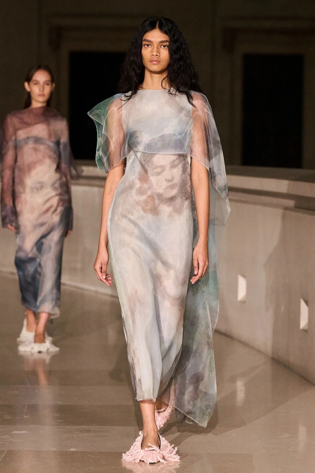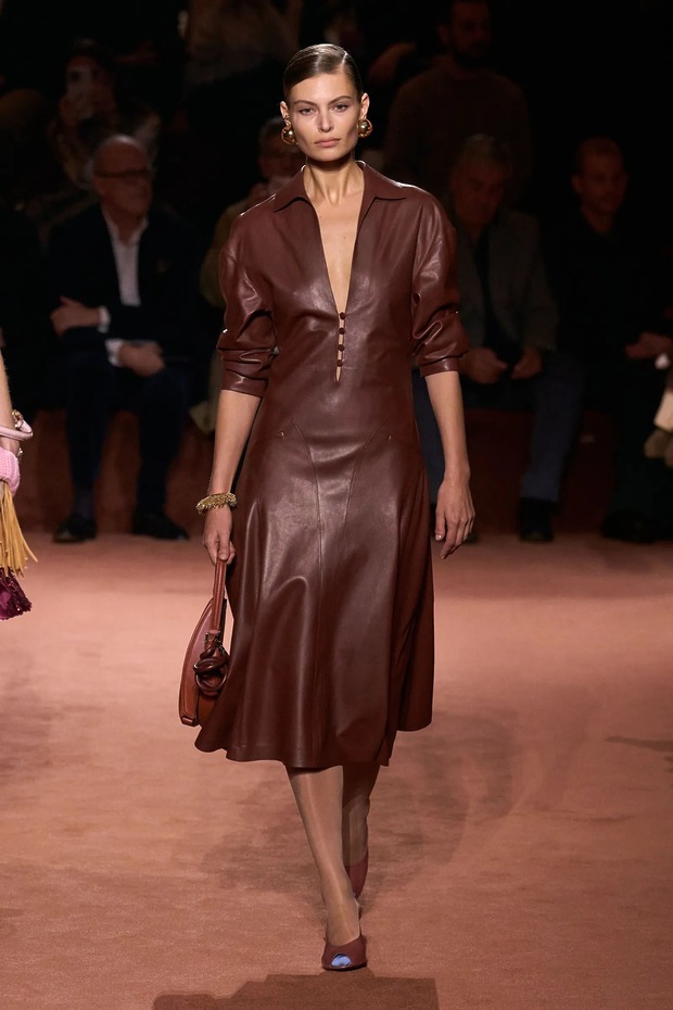 제가 좋아하는 털 달린 슬링백 힐도 등장했습니다. 시선을 단번에 사로잡는 이 슈즈는 기발함을 주저 없이 받아들이는 에르뎀의 것입니다. 우아함의 기준에 반항하는 것을 넘어, 실험 정신에 대한 찬사이자 가을/겨울 신발에 새로운 의미를 부여하죠. 털과 따뜻함이 재킷에만 국한된다는 법은 없으니까요.