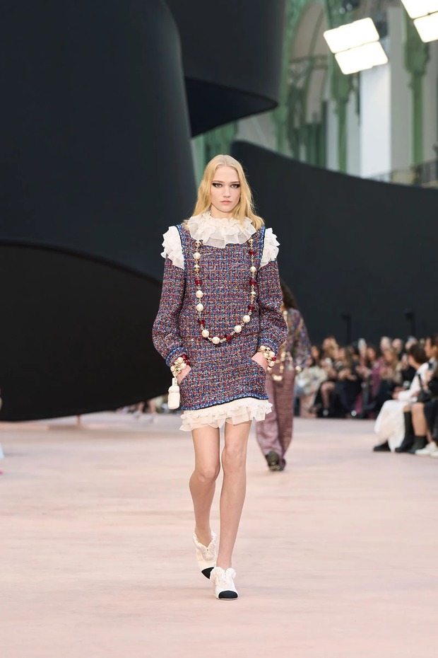 샤넬의 투톤 슈즈! 이 슈즈가 단지 단정한 우아함을 상징한다고 생각했다면, 샤넬의 최신 컬렉션을 아직 보지 못한 겁니다. 반달 모양 굽과 시그니처 앞코가 특징인 슬링백 뮬에 어깨끈에 사용할 법한 러플 장식 스트랩을 더했죠. 오리지널 디자인을 존중하면서도 실험을 지속할 때 매혹적인 룩이 탄생한다는 걸 이해하는 이들에게 추천합니다.