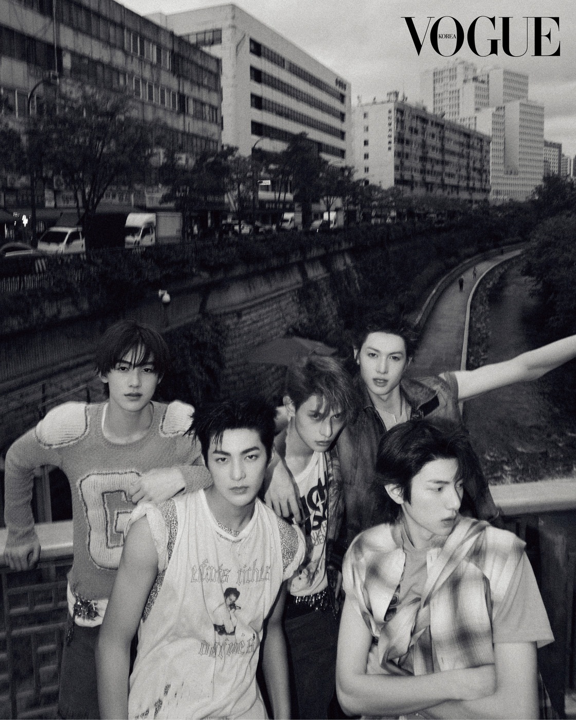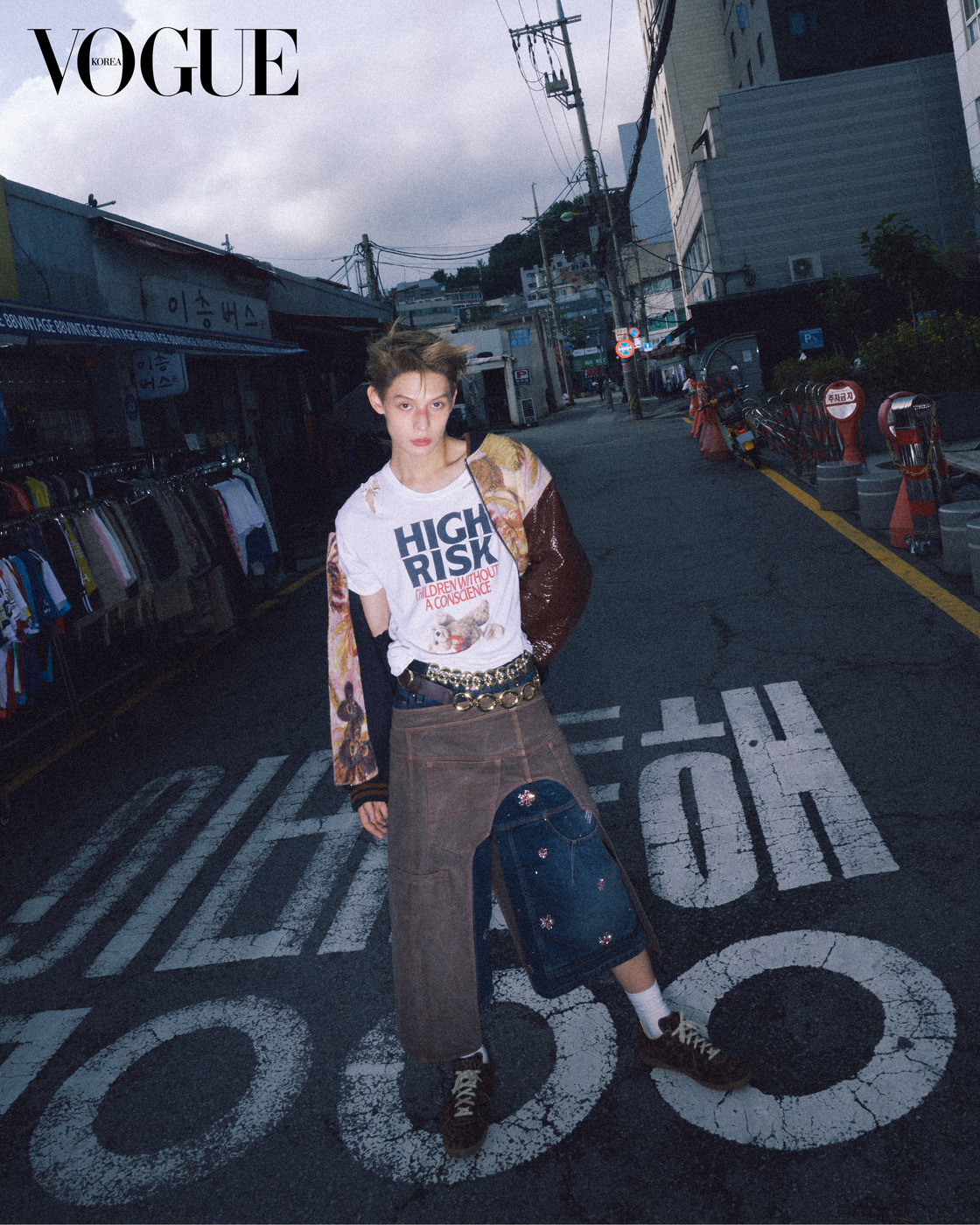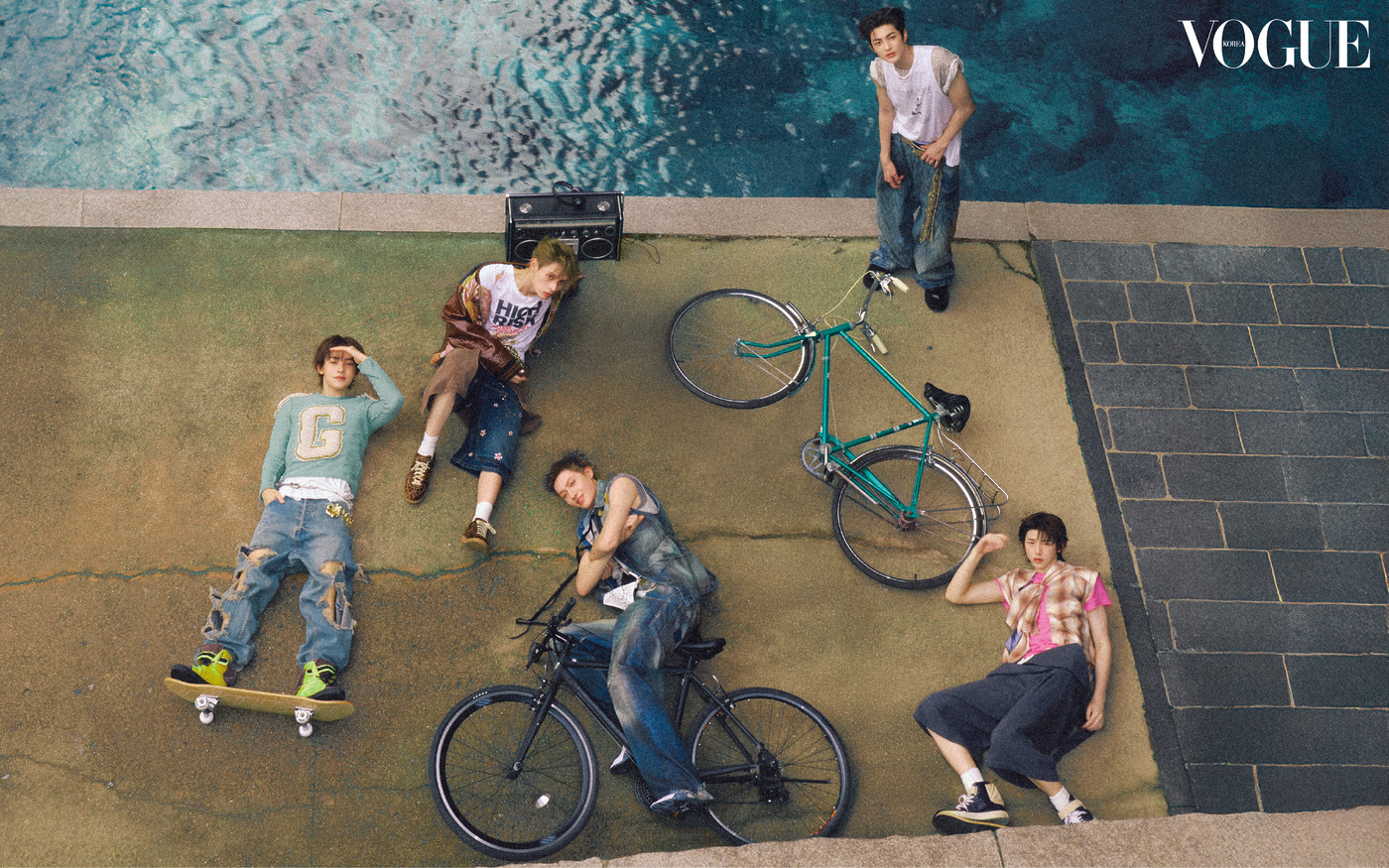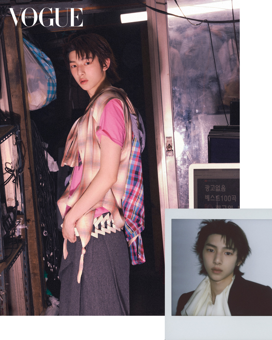 꿈 많은 소년들의 인생 첫 화보 촬영을 기획한 <보그>는 코르티스다운 또 하나의 기록을 위해 패션 그 자체를 내세우기로 했다. 패션은 의상과 복식이자 태도와 방식이며 사회적 양식이자 시대적 유행을 가리키는 총체적 개념이므로. 이번 화보를 진행한 <보그> 디지털 에디터는 코르티스의 ‘FaSHioN’이란 노래에서 ‘패션이 된 음악, 음악이 된 패션’이란 화보 주제를 떠올렸다. “패션은 태도를 입는 행위이고, 음악은 그 태도를 드러내는 행위잖아요. 워낙 틀을 깨는 것도 좋아하고 자신 있어 하는 그룹이니 서울의 중심인 동묘와 청계천에서 인생 첫 패션 화보를 마음껏 즐기게 하면 좋겠다 싶었습니다. 하우스 브랜드와 국내 브랜드, 빈티지 아카이브를 모두 아울러 어느 때보다 다채로운 의상을 준비한 이유죠.”