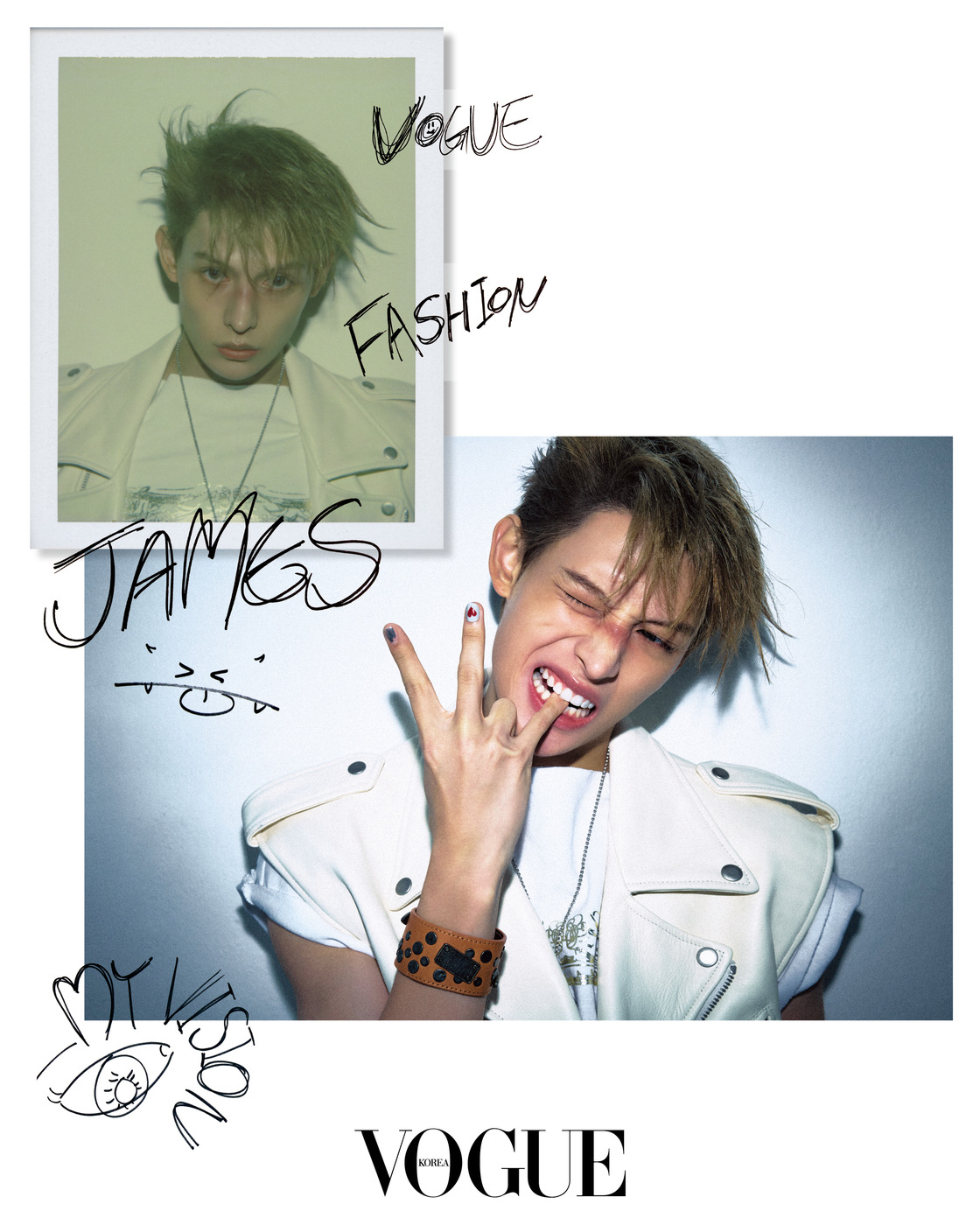 모든 준비가 끝나고, 마침내 <보그> 촬영장에 실체를 드러낸 코르티스는 예상한 대로 음악만큼 패션을 즐기는 눈치였다. 릭 오웬스의 톱과 팬츠에 마수의 베스트와 리빙턴 르아 레비스 123의 슬리브리스 톱을 매치한 마틴이 190cm에 달하는 길쭉한 신체를 유려하게 활용하며 가장 먼저 모두의 찬사를 이끌어냈다. “튀고 불편한 옷이 누군가에겐 가장 편안한 복장일 수 있듯 사람마다 자기표현 방식이 다르다는 점에서 패션이 재미있게 여겨져요.” 이국적인 인상의 제임스는 첫 번째 착장을 유난히 흡족해했다. 앤 드멀미스터와 준태 킴, 메종 마르지엘라의 아카이브 아이템을 레이어드한 스타일이었다. “시크한 남자로 변신할 수 있어 좋았습니다.”(제임스) 위풍당당한 표정의 제임스는 간단한 영상 촬영에서도 매번 몸이 부서져라 에너지를 발산하며 촬영 분위기를 돋웠다. 하얀 피부와 나른한 눈빛에서 귀공자 이미지가 흘러나오는 주훈은 “평소에는 절대 입지 않을 듯한” 맥퀸의 하늘거리는 재킷과 셔츠를 입자 뿜어져 나온 새로운 아우라를 만족스럽게 음미했다(“아주 마음에 들더라고요.”). 보조개가 매력적인 성현도 강렬한 메이크업과 스타일로 반전 매력을 발산했다. “적당한 센스를 추구하지만 내심 센 스타일에 도전해보고 싶었거든요. 숨겨진 욕망을 표출할 수 있는 환경을 제공해준 <보그>에 감사드립니다.”(성현) 자신의 패션에서 이너 웨어의 중요성을 강조한 건호에게도 만족스러운 시간이었을까? “새깅(바지를 허리선보다 아래로 내려 속옷이 살짝 보이도록 연출하는 것)을 좋아해요. 다른 것도 중요하지만 속옷은 특히 중요하죠.”(건호) 선 굵은 인상 때문에 어디서든 눈에 띄는 건호는 다행히 촬영 중 시선이 닿을 때마다 환한 미소를 짓고 있었다.