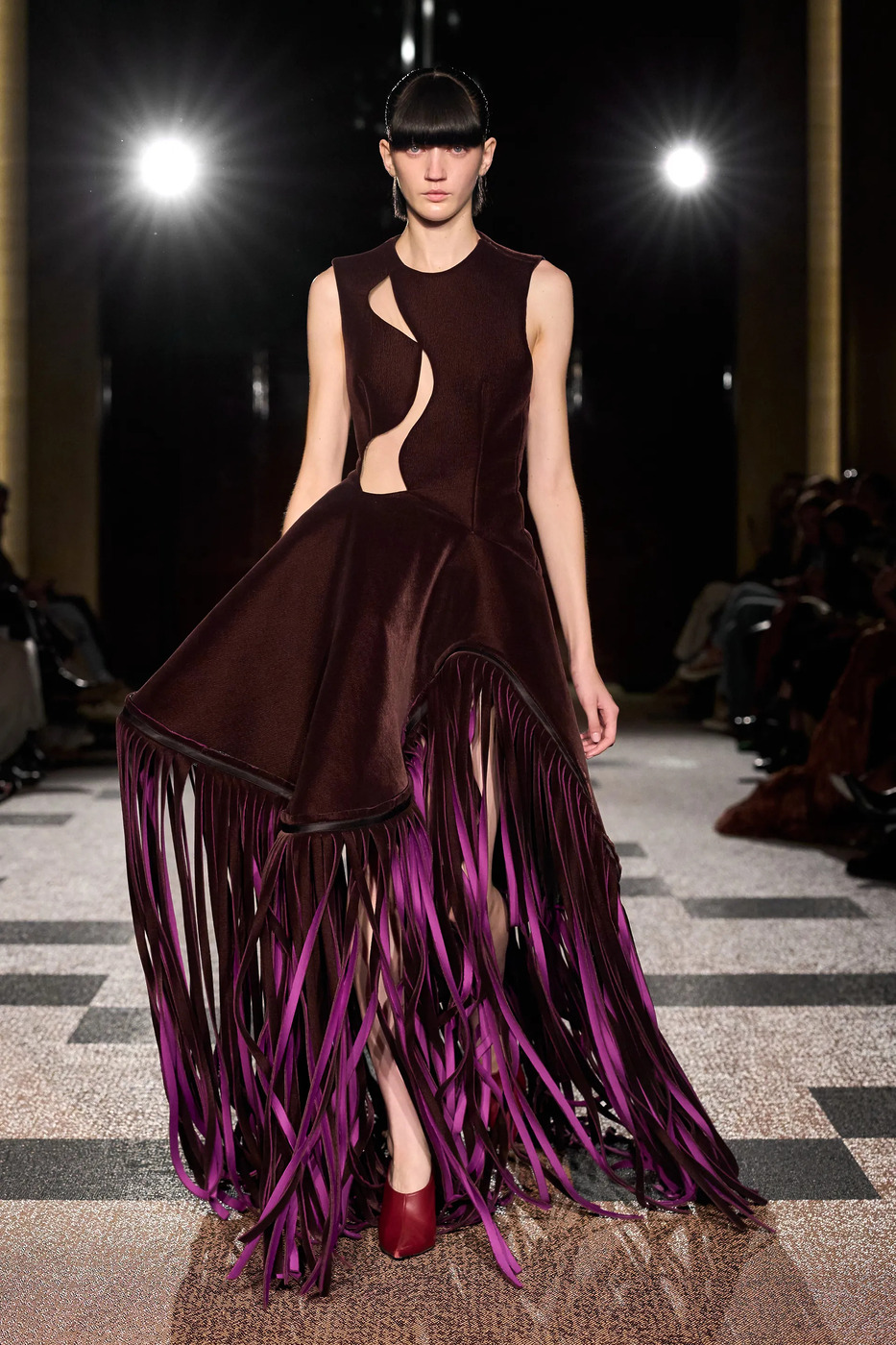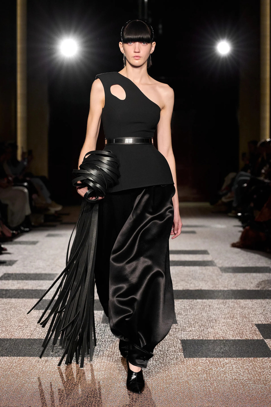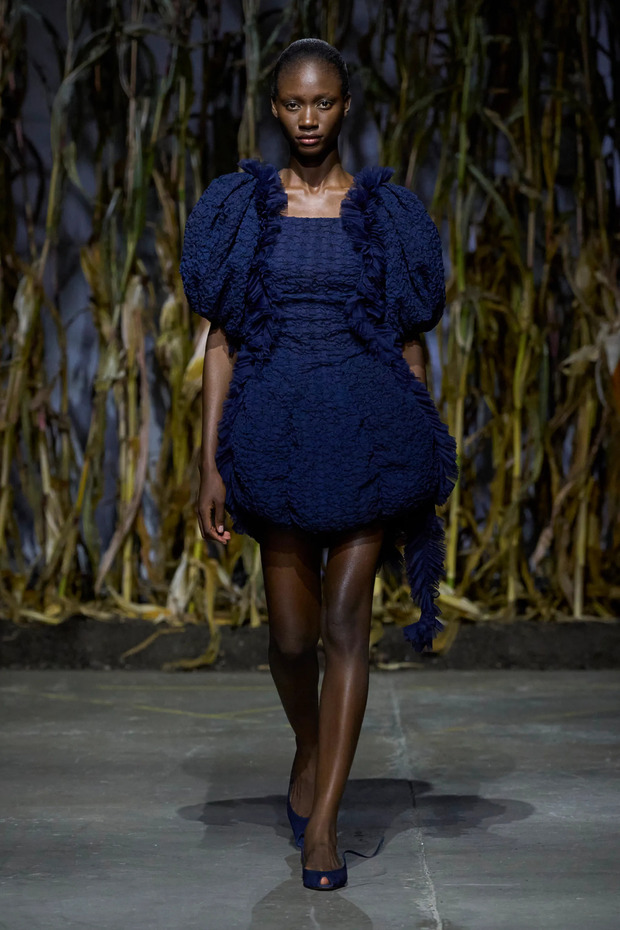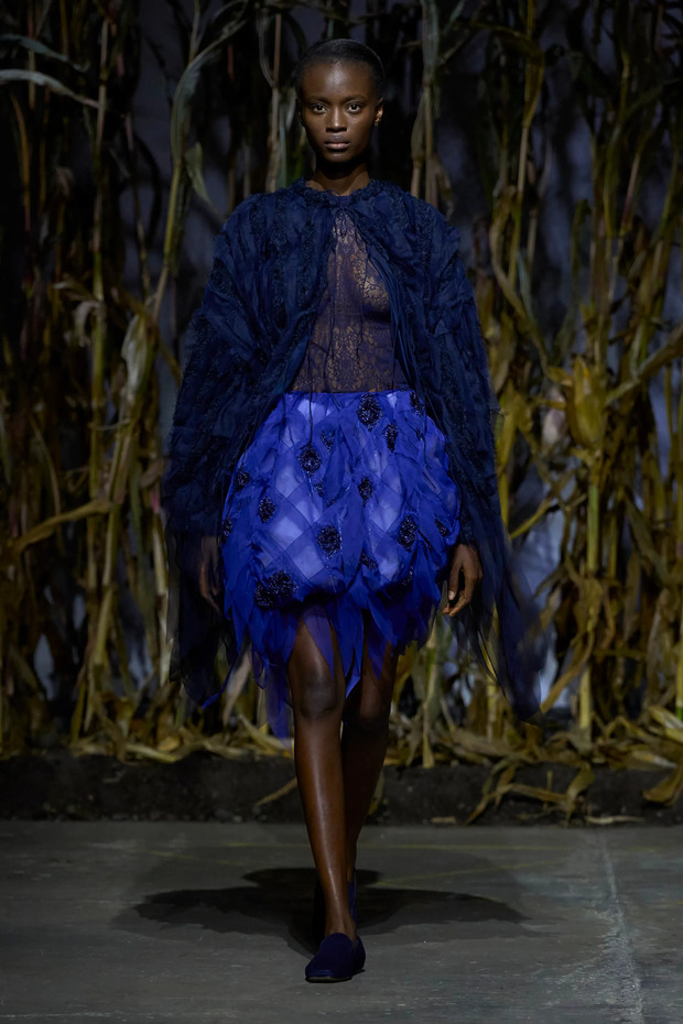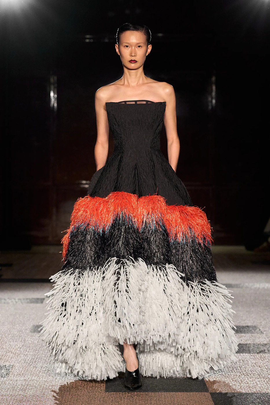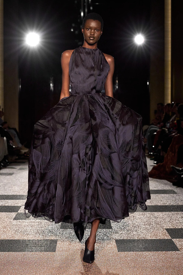 록산다는 20년 동안 쌓아 올린 자신의 모든 유산을 자랑스레 내보이며 론칭 20주년을 자축했습니다. 그녀의 ‘고향 친구’인, 세르비아 출신 아티스트 마리나 아브라모비치 역시 프런트 로에 앉아 축하를 전했고요. 록산다는 컬렉션의 주된 영감으로 영국 출신 조각가 바바라 헤프워스(Barbara Hepworth)를 꼽았는데요. 특히 헤프워스의 조각품에서 발견할 수 있는, ‘인공적이지 않은 곡선’의 영향을 받았다고 이야기했습니다. 그녀의 말처럼, 이번 컬렉션에 등장한 드레스는 대부분 몸을 부드럽게 감싸는 곡선 형태였죠. 코쿤 형식의 하이넥 코트 역시 흥미로웠습니다. 크리스토발 발렌시아가나 무슈 디올이 만든 꾸뛰르 피스 못지않은 신비로움을 자아냈죠.