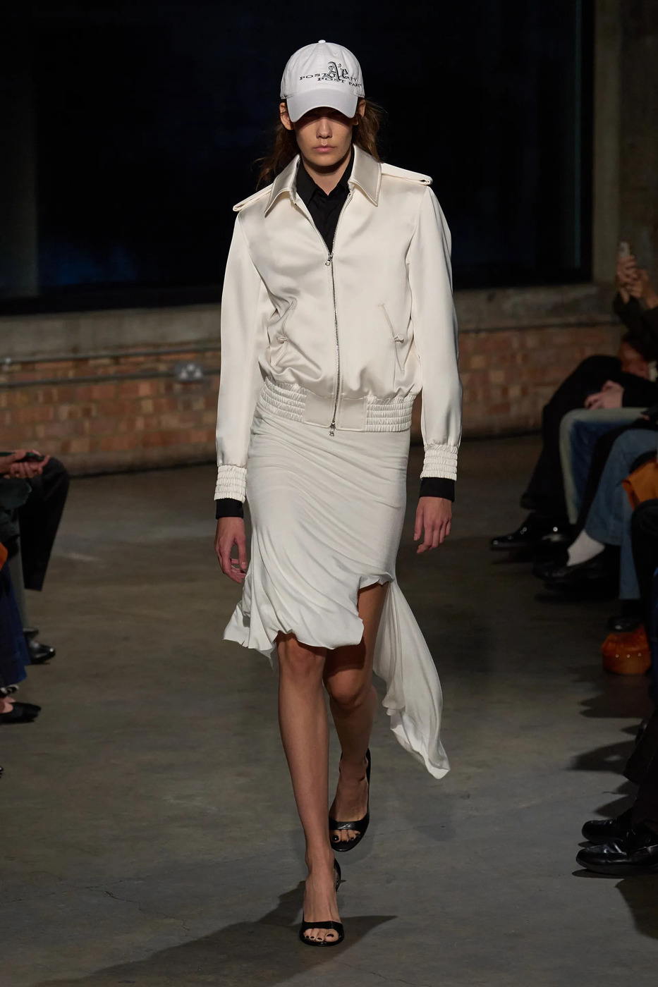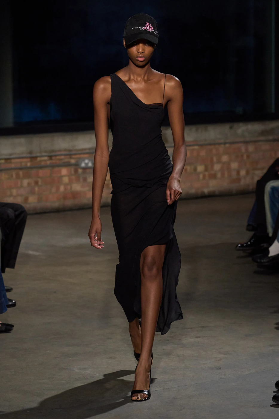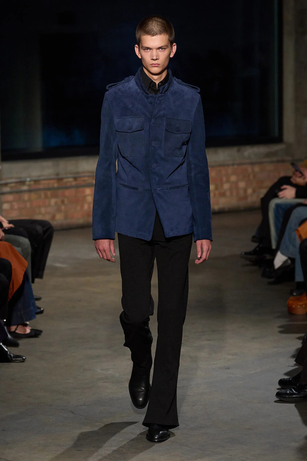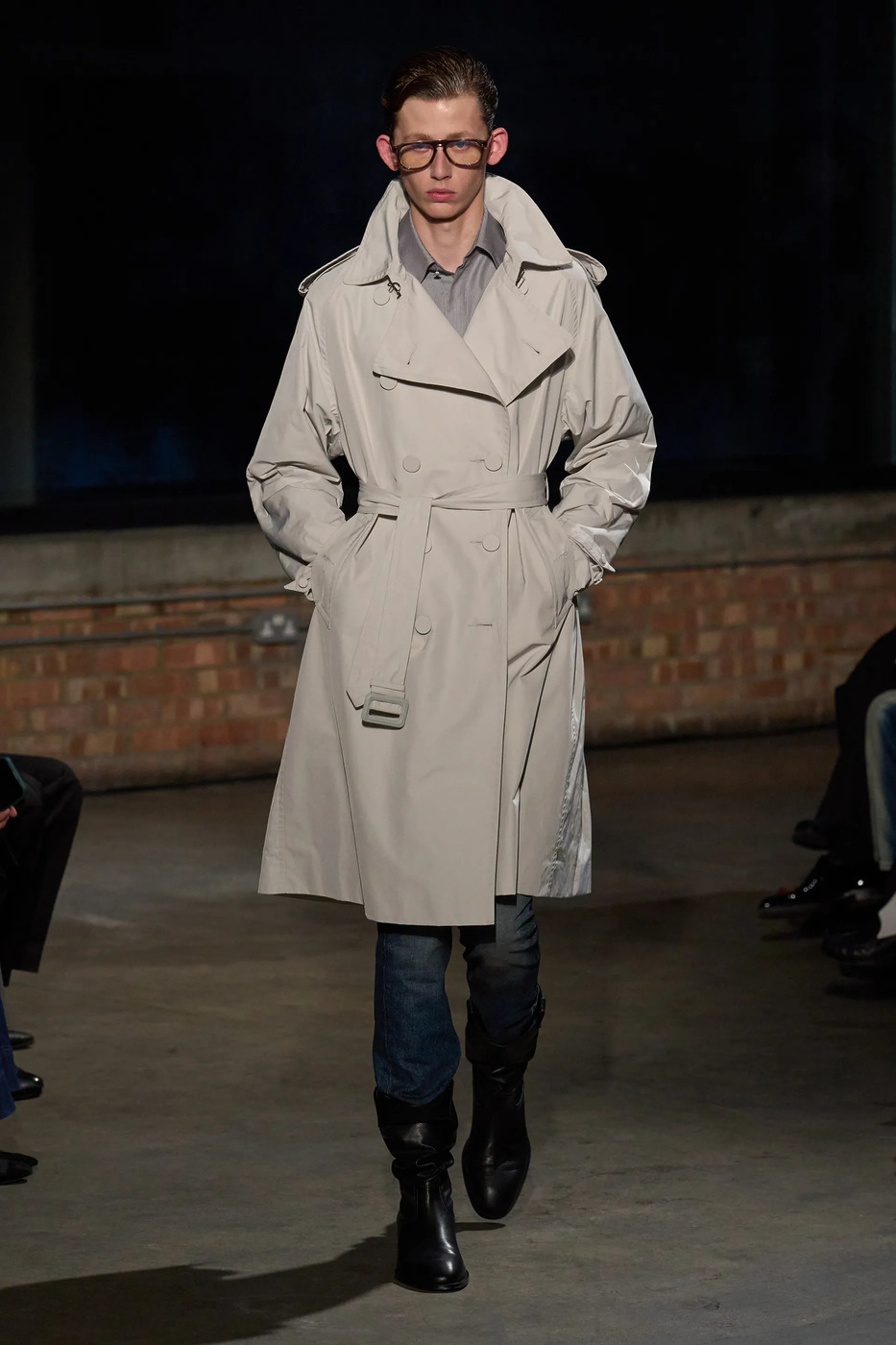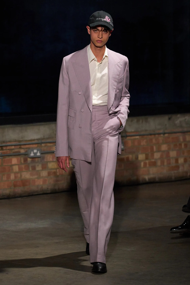 쇼의 시작은 밴드 프라이멀 스크림(Primal Scream) 멤버 바비 길레스피와 케이티 잉글랜드의 아들이자 모델로도 활동하는 럭스 길레스피가 열었습니다. 타이트한 핏의 레더 봄버를 입은 그는 이스트 런던의 자그마한 클럽에서 열리는 파티를 밤새 즐긴 뒤 터덜터덜 귀가하는 듯한 모습이었죠. 에런 에쉬의 주특기 중 하나인 드레이핑이 돋보이는 슬립 드레스도 눈에 띄었습니다. 이번 컬렉션에서는 저렴한 아이템과 값비싼 아이템을 섞어 입는, 런던 특유의 ‘하이 앤 로우’ 스타일링 역시 반복적으로 등장했는데요. 스웨이드 소재 트렌치 코트에 때 묻고 찢어진 청바지를 매치한 룩, 그리고 더블브레스트 재킷에 볼캡을 쓰는 스타일링은 우리의 데일리 룩에 영감을 주기에도 충분했죠. “귀가 터질 듯 음악을 틀어놓고 노는 사람들에게서 영감을 받았습니다. 진짜 사람들이 입는 ‘진짜 옷’을 선보이고 싶었죠.” 쇼 직후, 에런 에쉬가 남긴 코멘트 그대로였습니다.