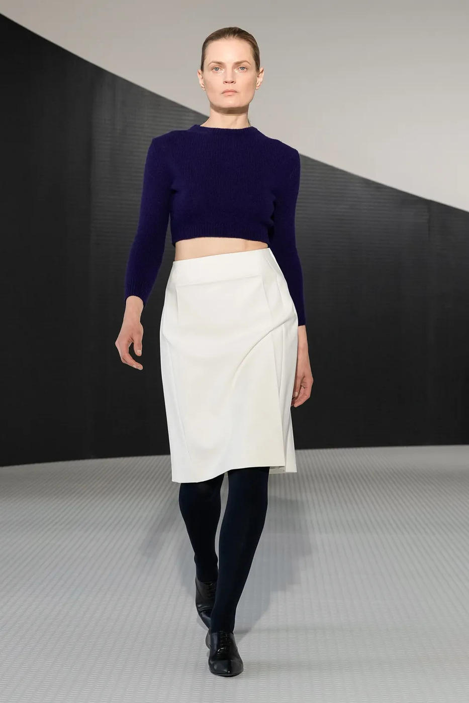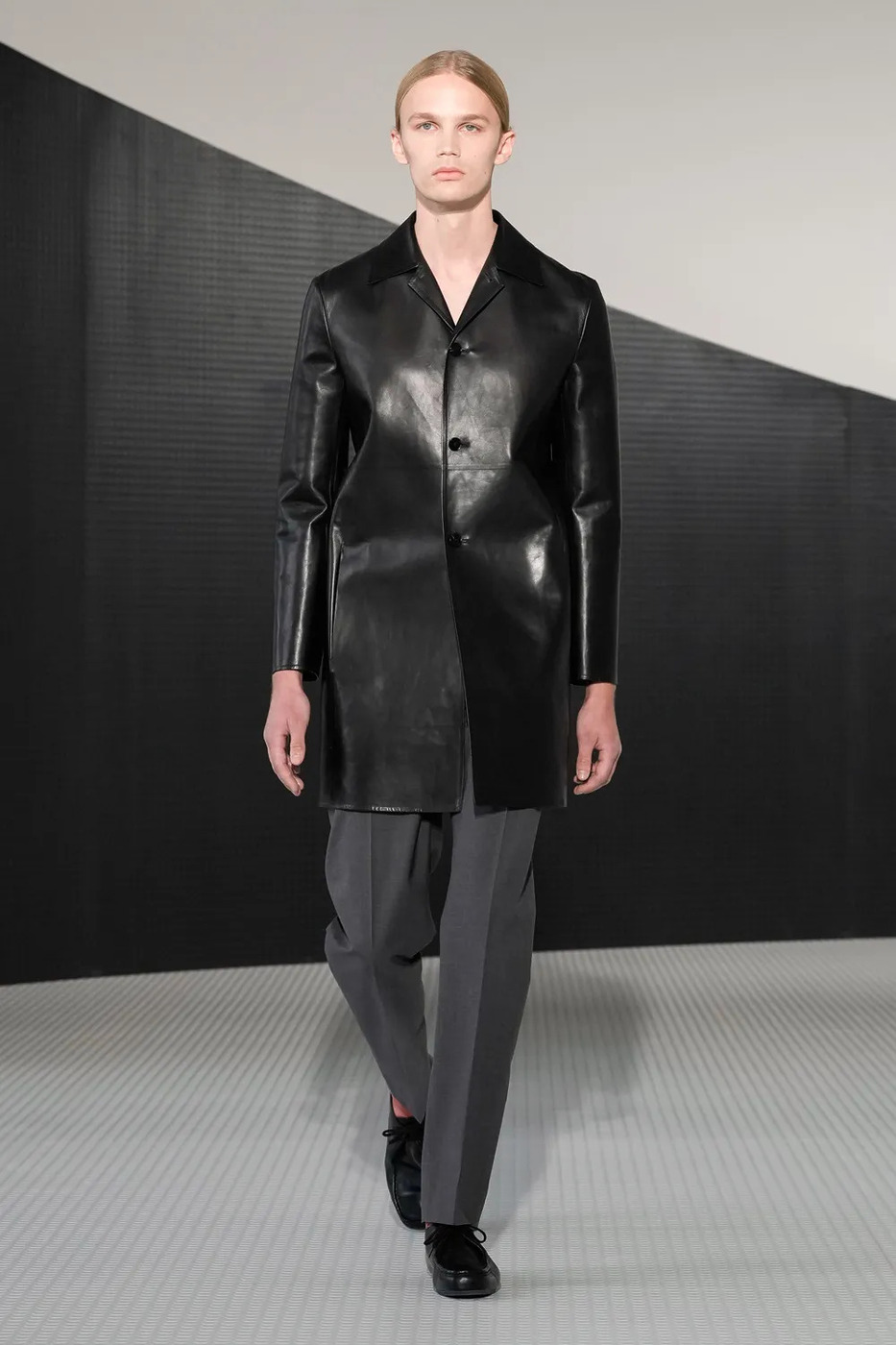 벨로티는 발리 재직 시절 날렵한 실루엣의 보트 슈즈를 선보이며 한 차례 트렌드를 주도했다. 그의 질 샌더 데뷔 역시 매력적인 디자인의 신발로 가득하다. 페이턴트 레더 소재로 제작한 옥스퍼드 슈즈는 리처드 프린스의 작품이 연상되고, 크레이프 솔을 더한 데저트 부츠는 발리의 보트 슈즈 못지않은 인기를 끌 것으로 보인다. 최고 수준의 가죽 제품을 제작하는 브랜드에서 일한 경험이 있는 벨로티는 더블 페이스 레더 재킷과 코트를 설명하며 ‘최고급’이라는 수식어를 사용했다. “모두가 질 샌더에 대해 각자만의 생각을 갖고 있을 겁니다. 품질 좋은 옷을 찾는 사람이라면, 질 샌더 매장에 방문해도 후회는 없을 거라고 확신해요.”